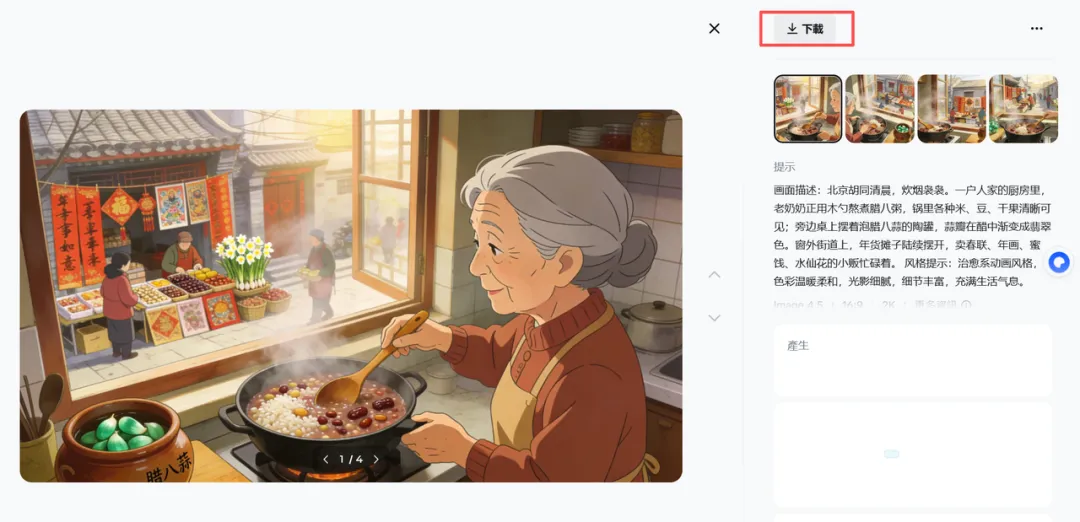 生成后挑选满意的图片下载。第一次出来的效果不理想?没关系,用"局部重绘"或者修改提示词重新生成就行。