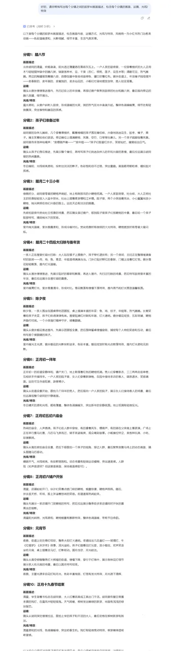 图有了,下一步让DeepSeek写出每个分镜之间的视频描述。