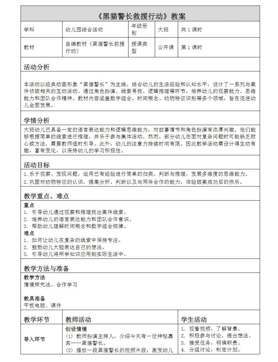 大班科学《黑猫警长救援行动》含教案+说课稿+PPT课件+希沃课件+逐字稿+反思+课堂实录