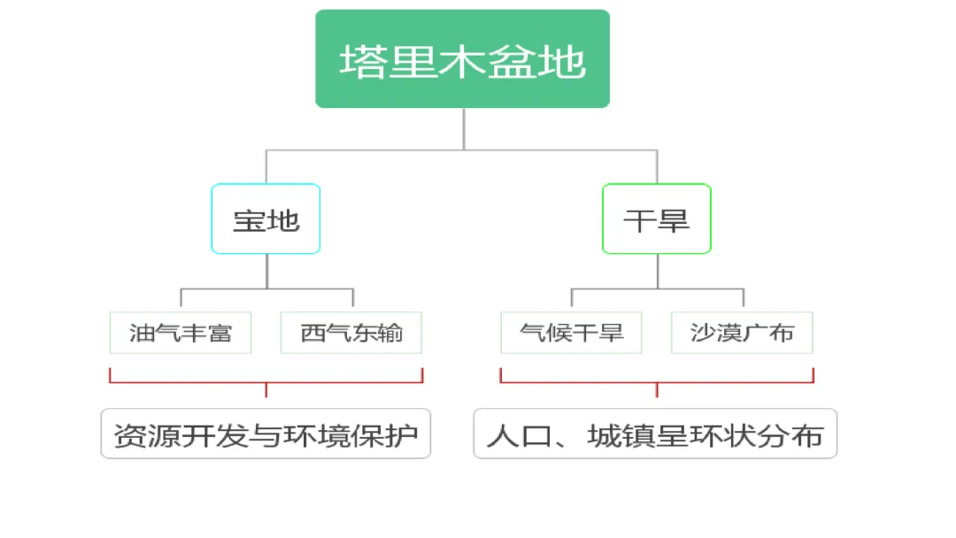 1. 通过对塔里木盆地各地理要素之间联系的学习,初中让学生体会到人与自然需要和谐共处,从而树立可持续发展观。