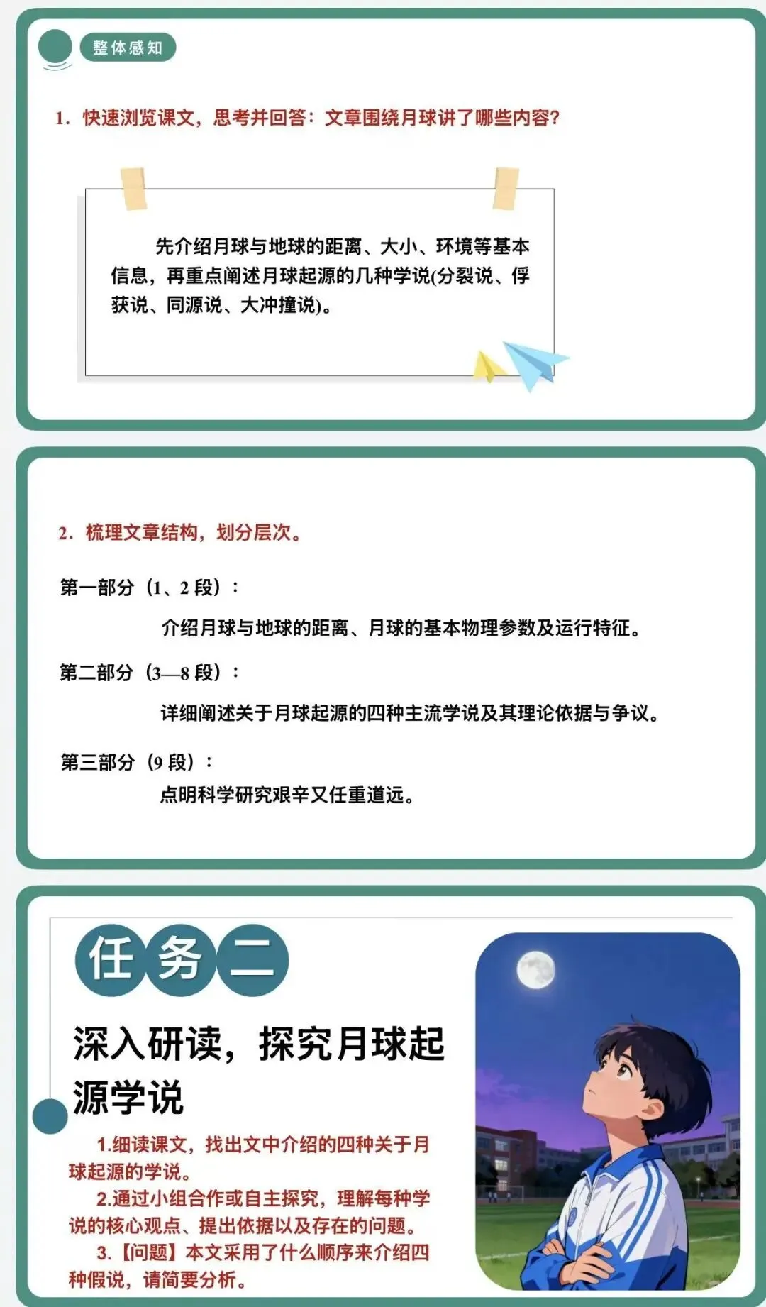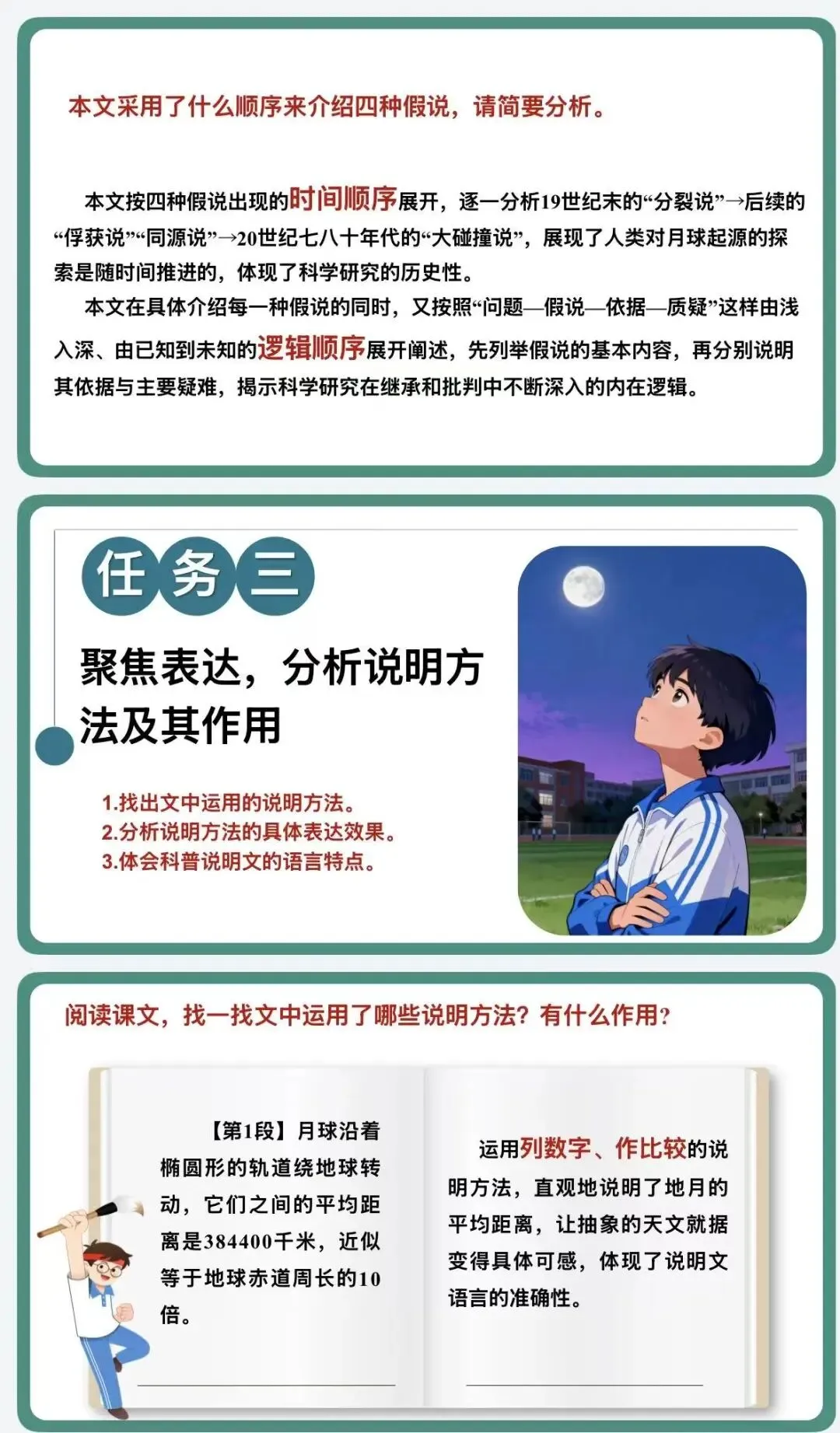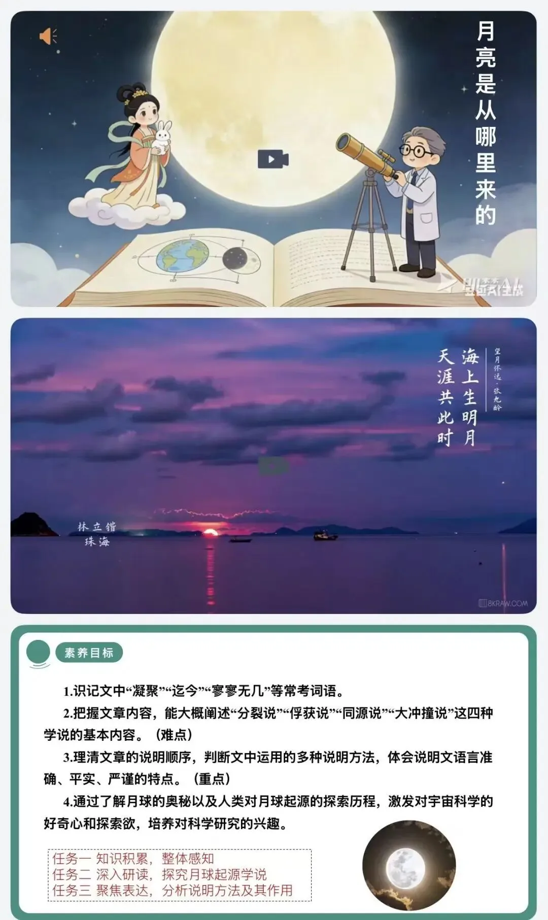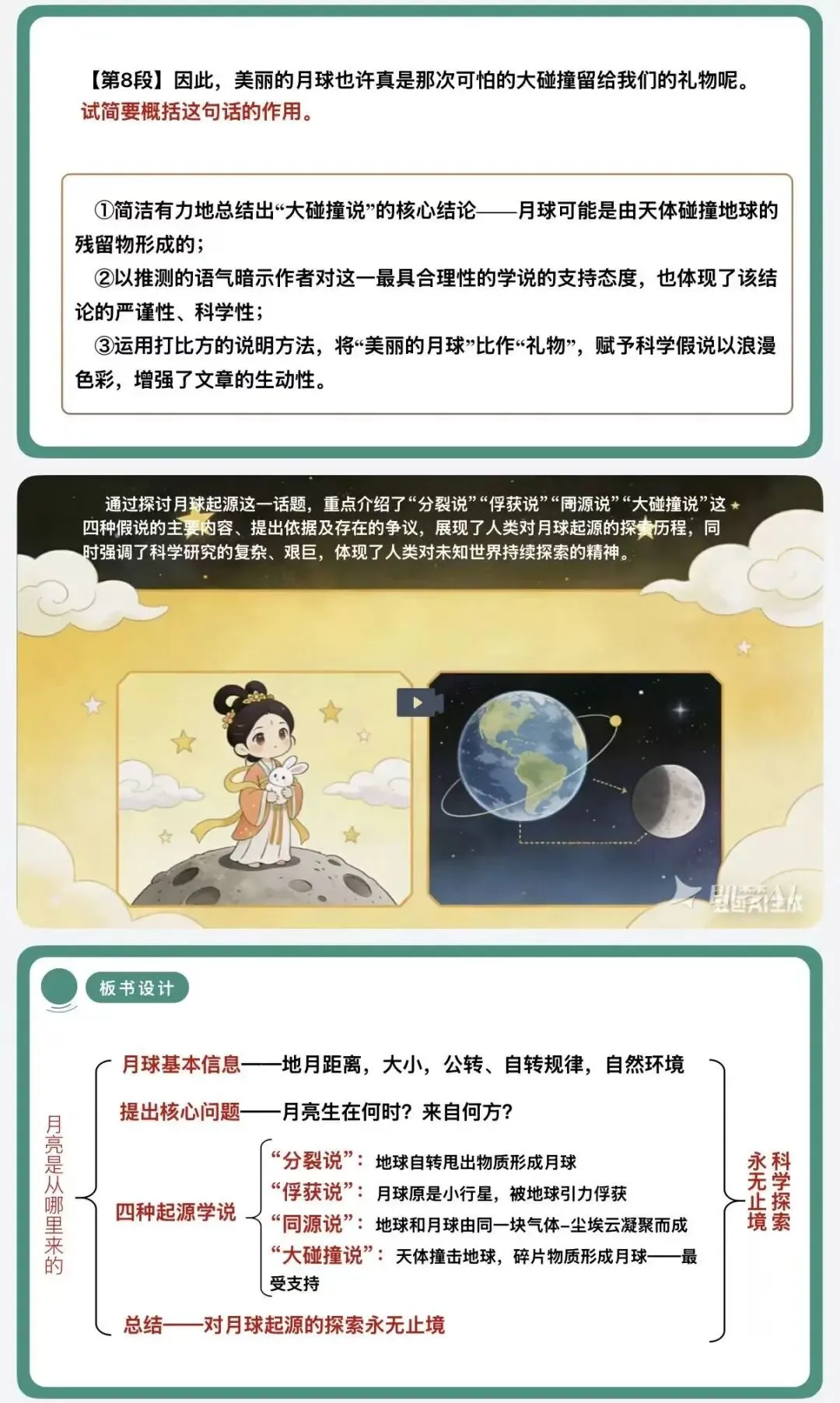 八年级下册语文新增课文《月亮是从哪里来的》课件来啦!紧扣课本素养目标,拆解月球起源四大核心学说,梳理说明文考点,适配课堂教学与预习复习~
