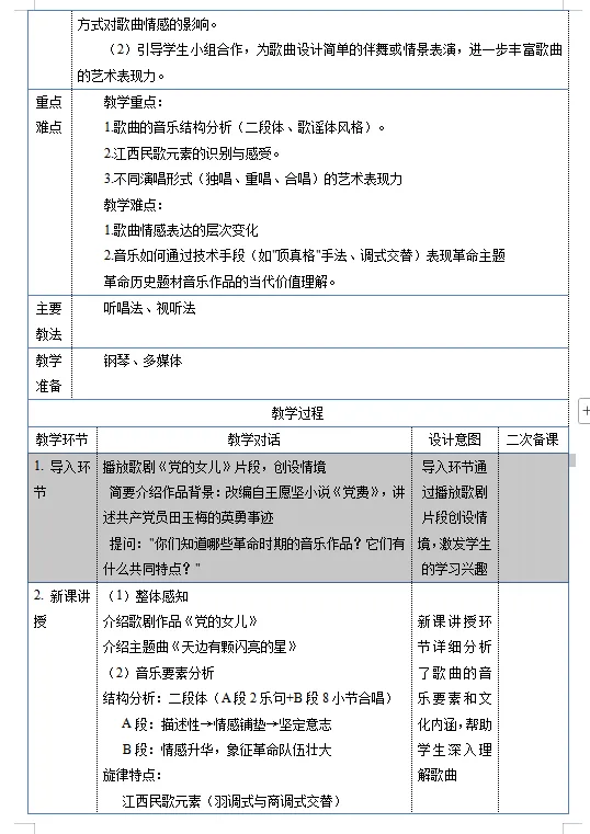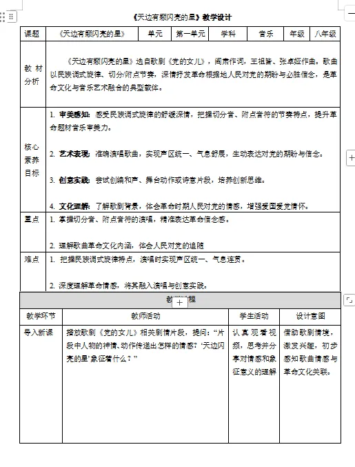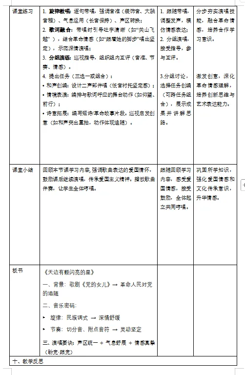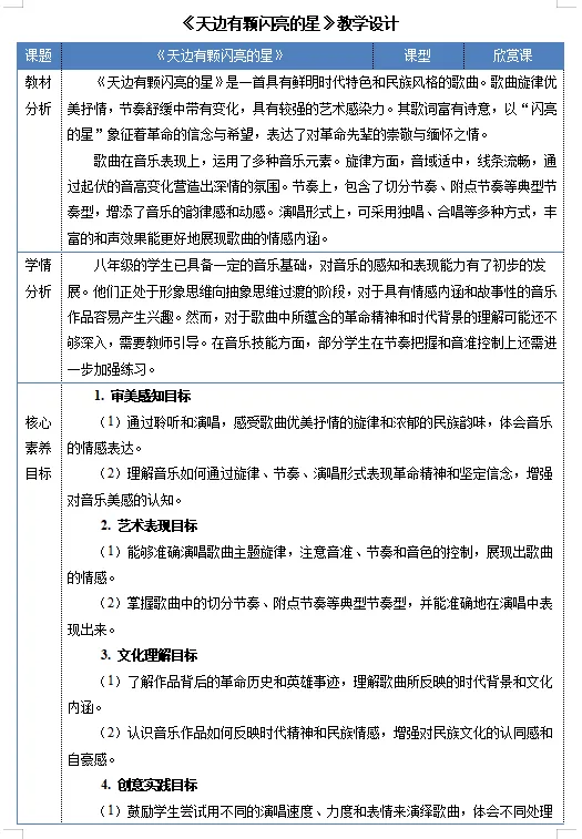 1.准确演唱《天边有颗闪亮的星》《映山红》《化蝶》等歌曲,表达作品情感