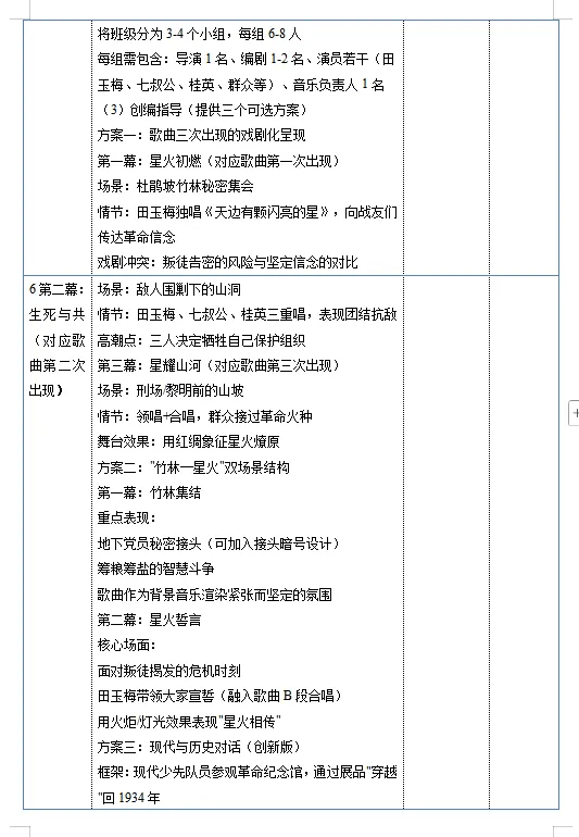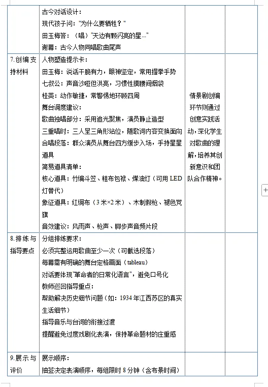 1.参与小组合作,创编简单的音乐情景剧(如《梁山伯与祝英台》片段)