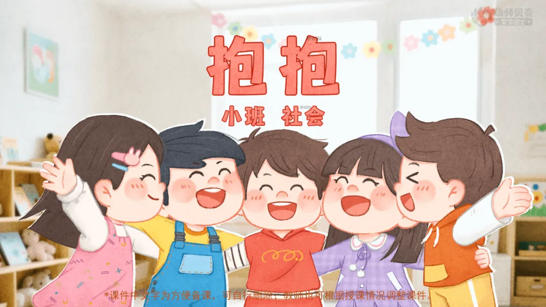 小班幼儿正处于情感发展与社交启蒙的关键阶段,他们对亲密的身体接触有着天然的需求,且开始尝试理解和表达简单的情感,但往往缺乏合适的方式。基于这一年龄特点,本活动以 “抱抱”这一幼儿熟悉的行为为核心,通过多维度的体验与感知,帮助幼儿深入理解拥抱的价值。