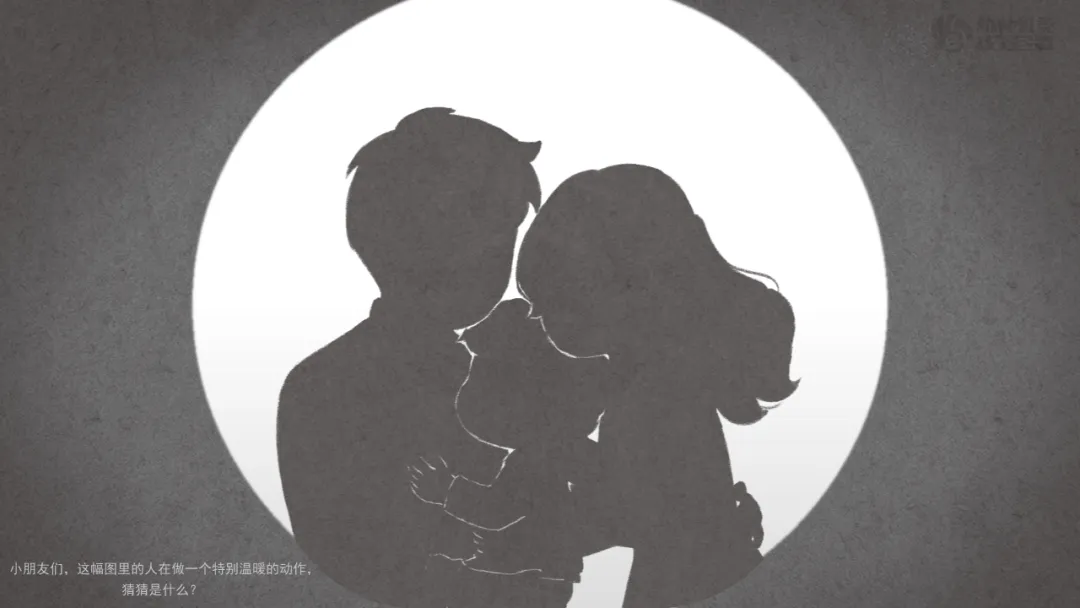 ——小朋友们,这幅图里的人在做一个特别温暖的动作,猜猜是什么?