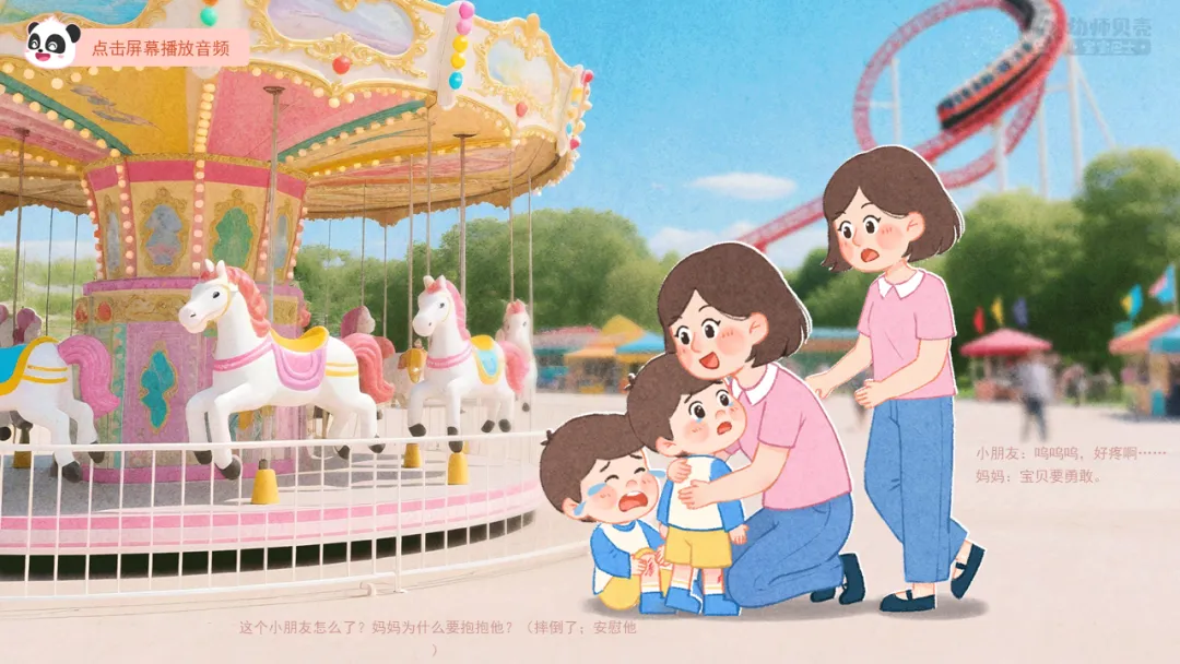 ——这个小朋友怎么了?妈妈为什么要抱抱他?(摔倒了;安慰他)