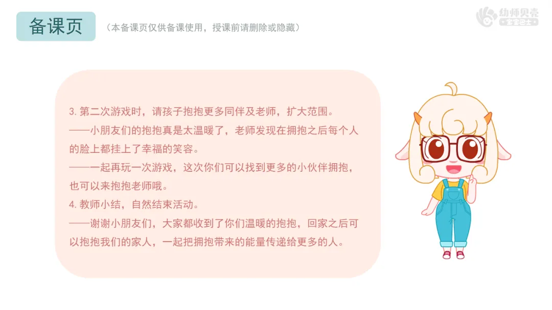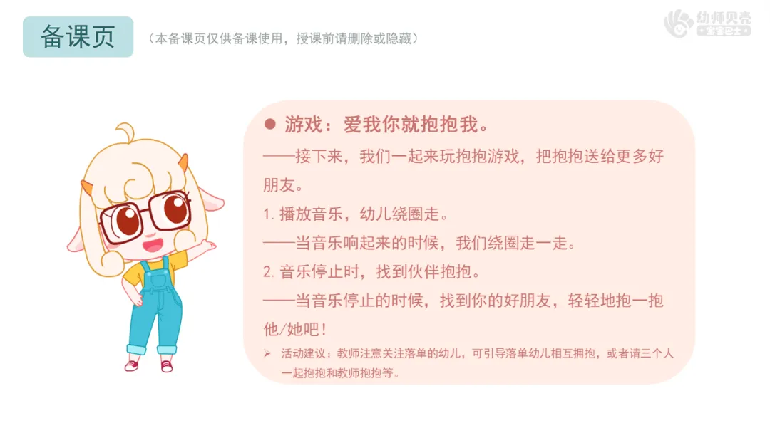 ——接下来,我们一起来玩抱抱游戏,把抱抱送给更多好朋友!