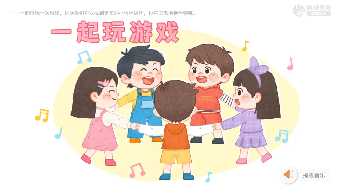 ——一起再玩一次游戏,这次你们可以找到更多的小伙伴拥抱,也可以来抱抱老师哦。