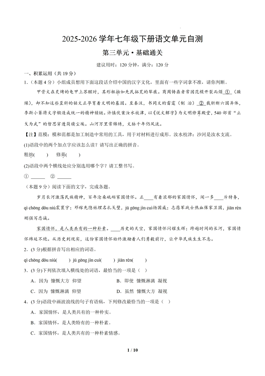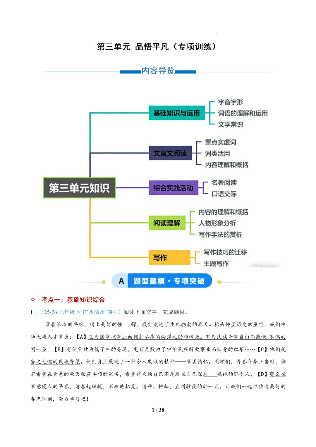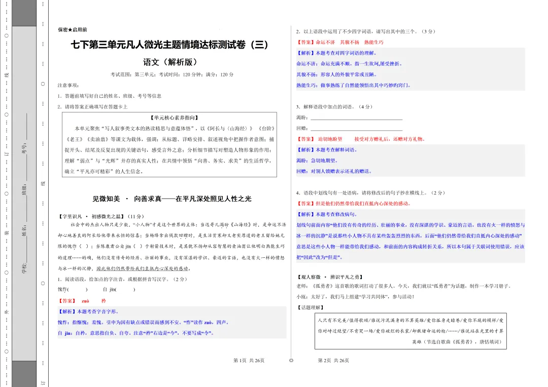 七下语文是夯实语文基础、培养阅读思辨能力的黄金阶段。这套资料由一线语文教师精心整理,紧扣教材核心,贴合中考命题趋势,不管是学生自主刷题提分,家长辅助孩子复习,还是老师备课教研,都是省心之选。