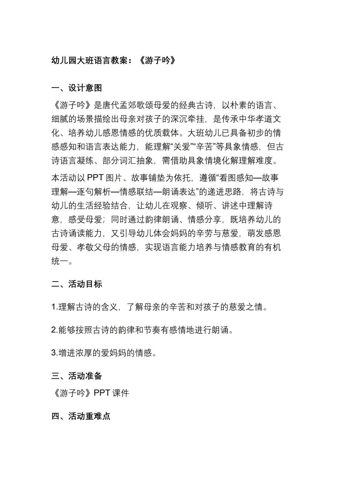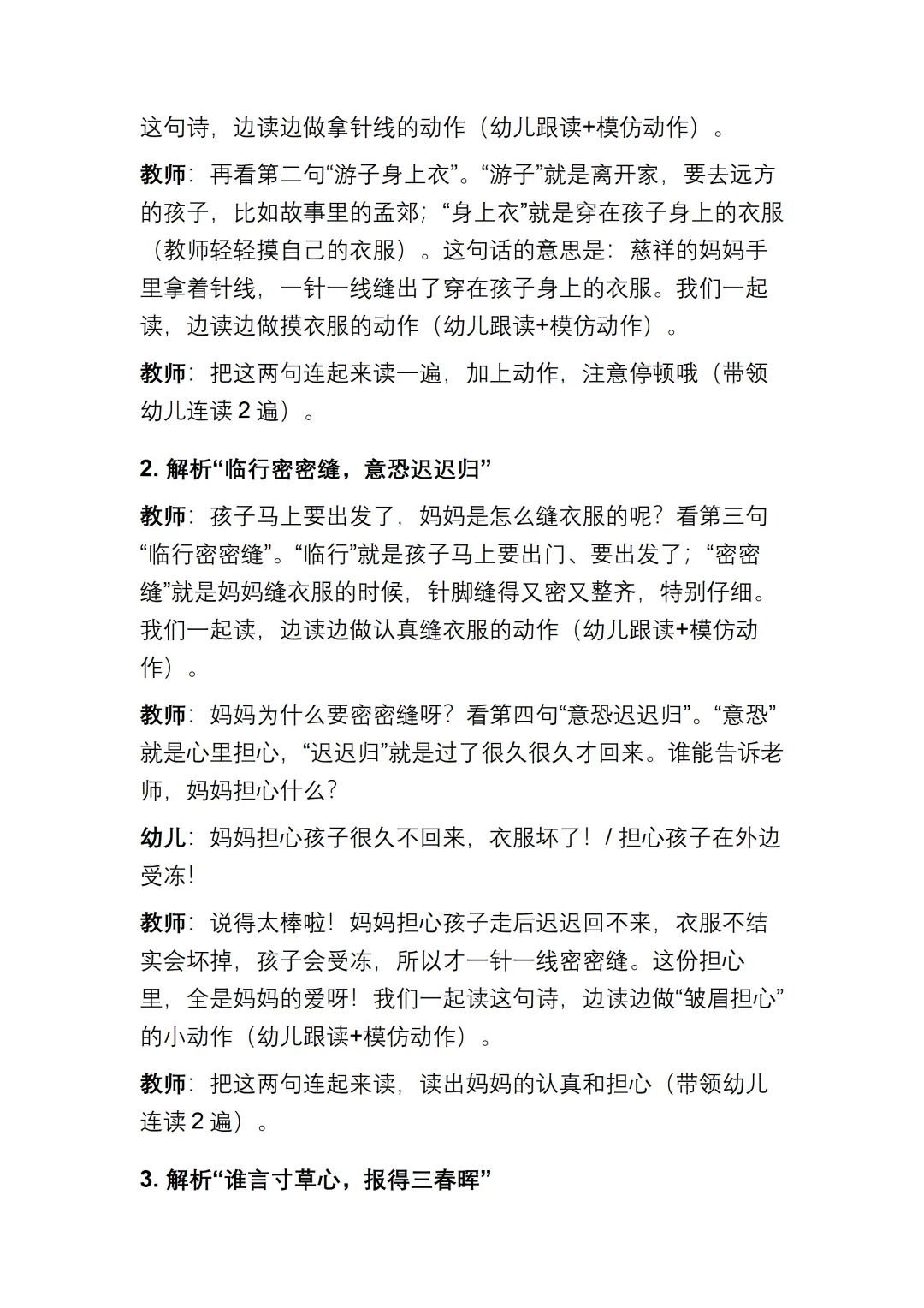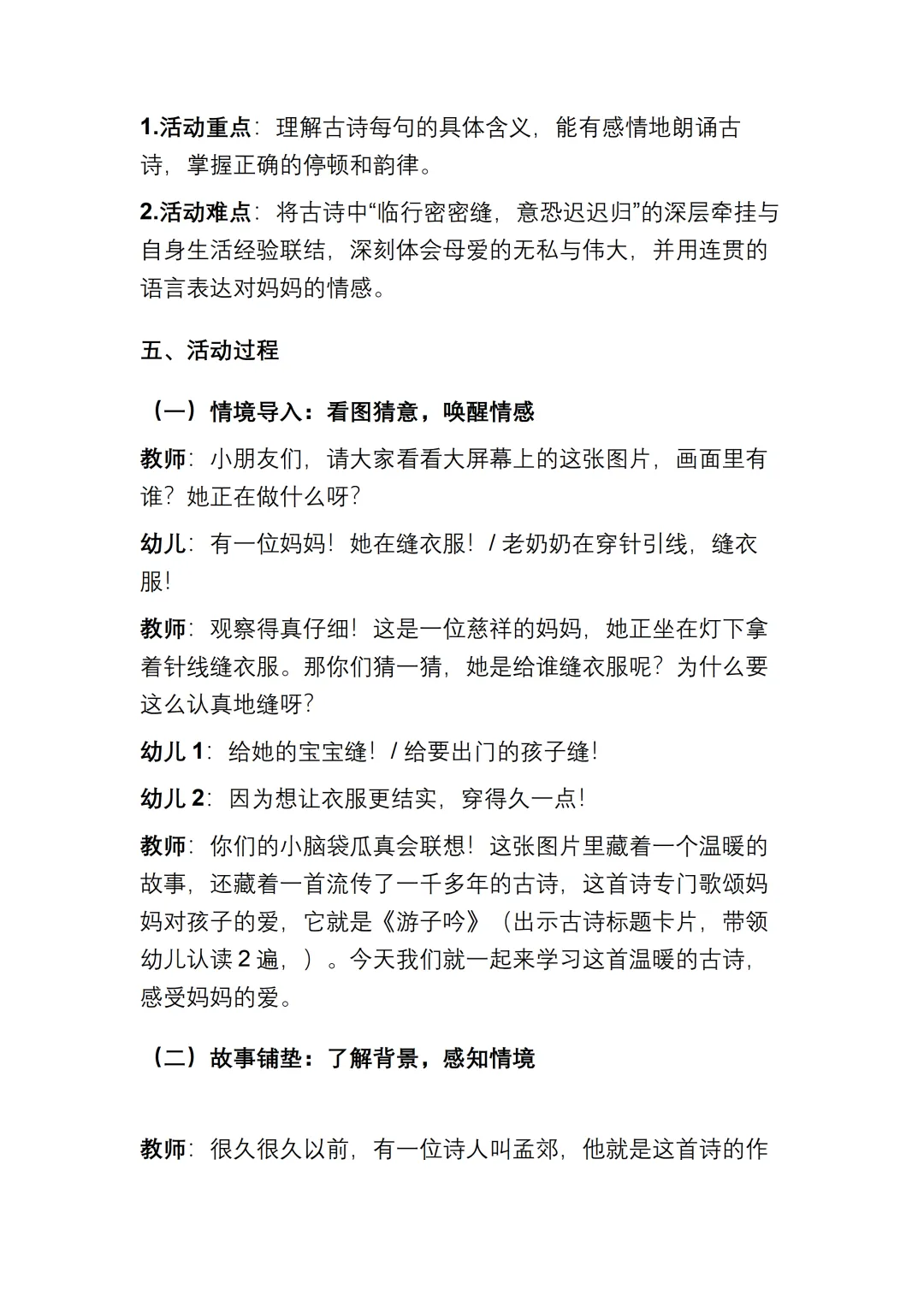 幼儿园大班语言《游子吟》动态PPT课件+教案+说课稿