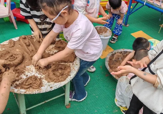 泥巴捏在手中是什么感觉?捏一捏,有什么变化?