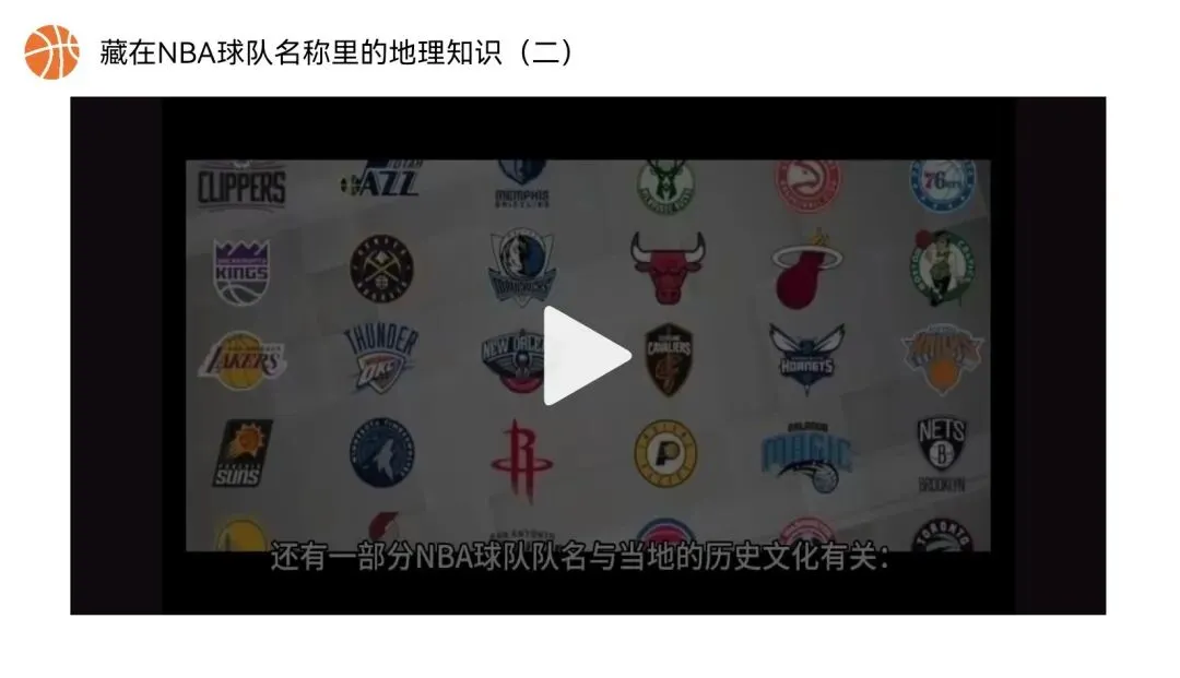 这里有一个视频和历史文化有关,和后面图片显示部分重合,对于NBA情境不熟悉的话播放视频可帮助情境过渡。