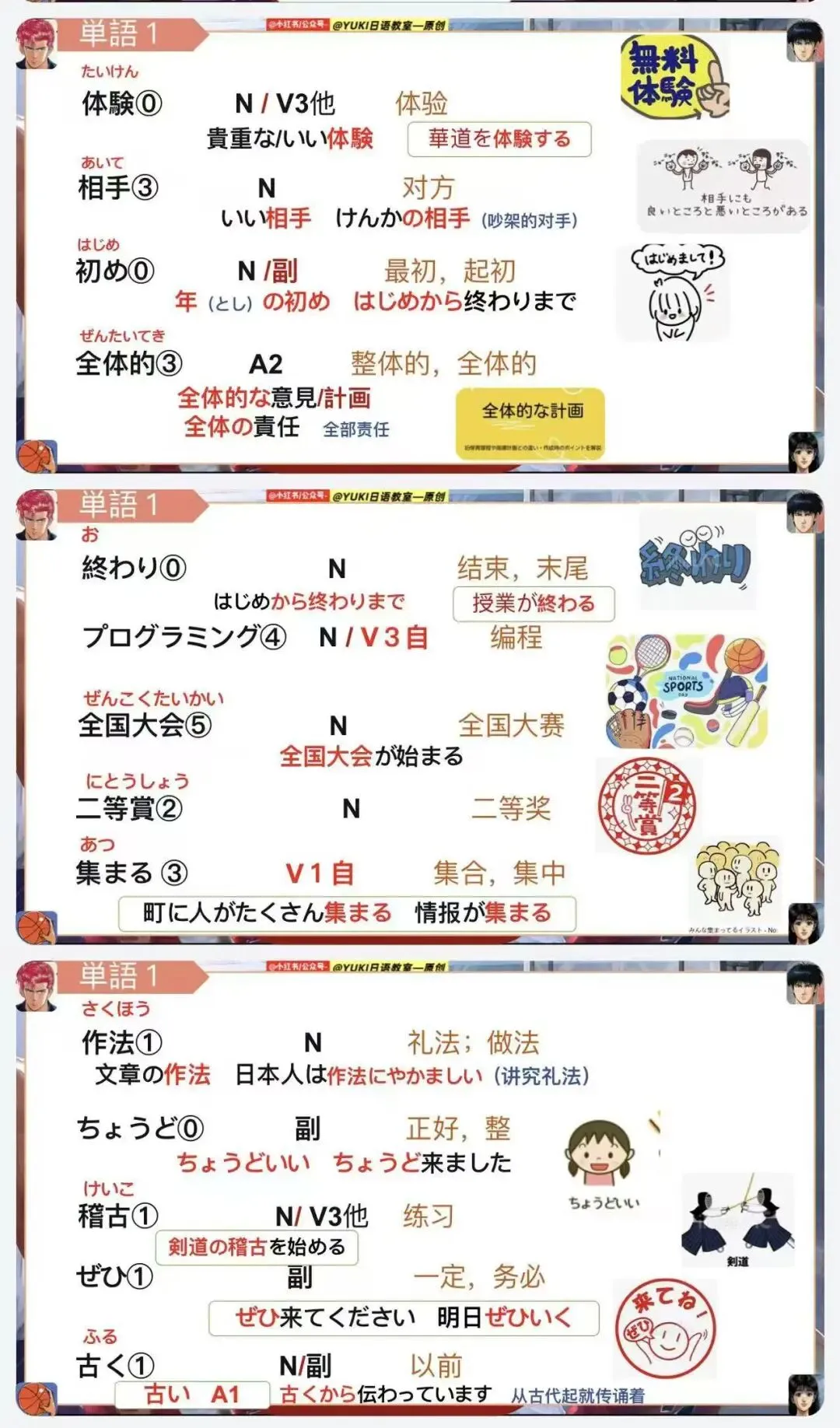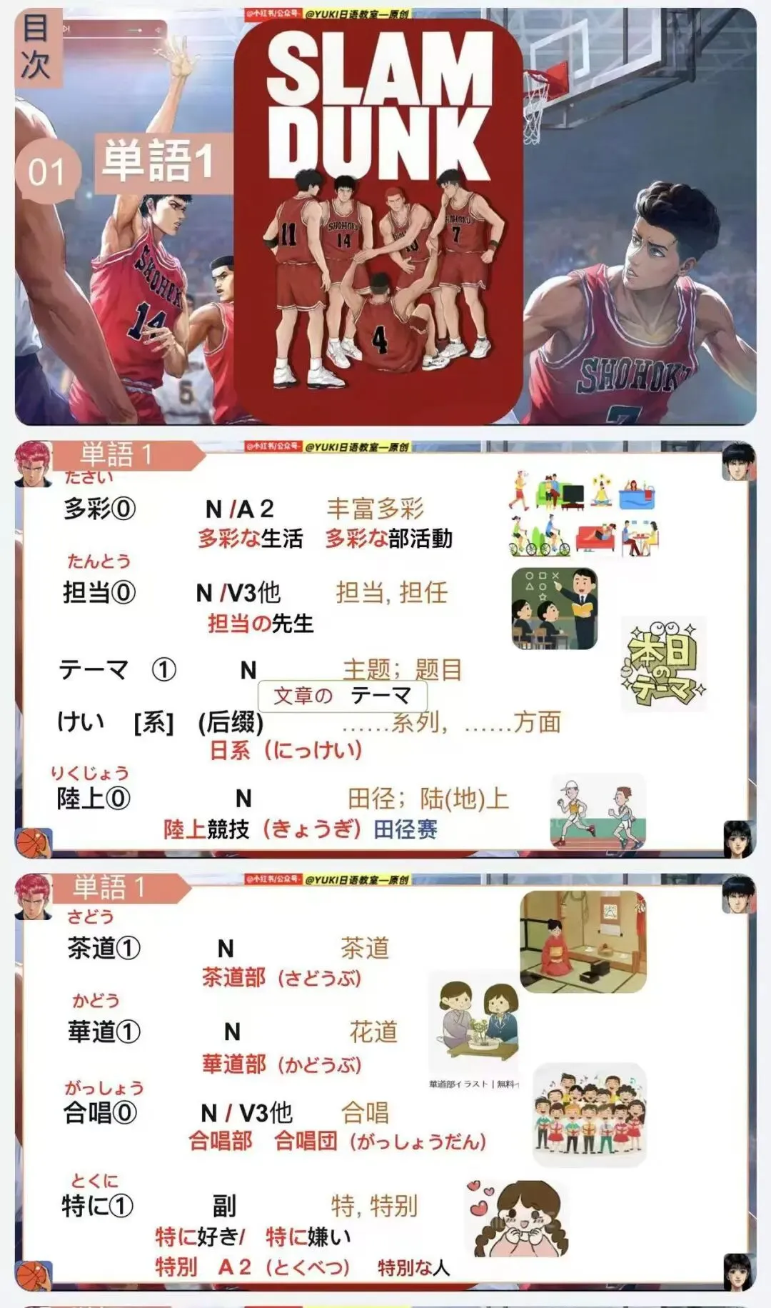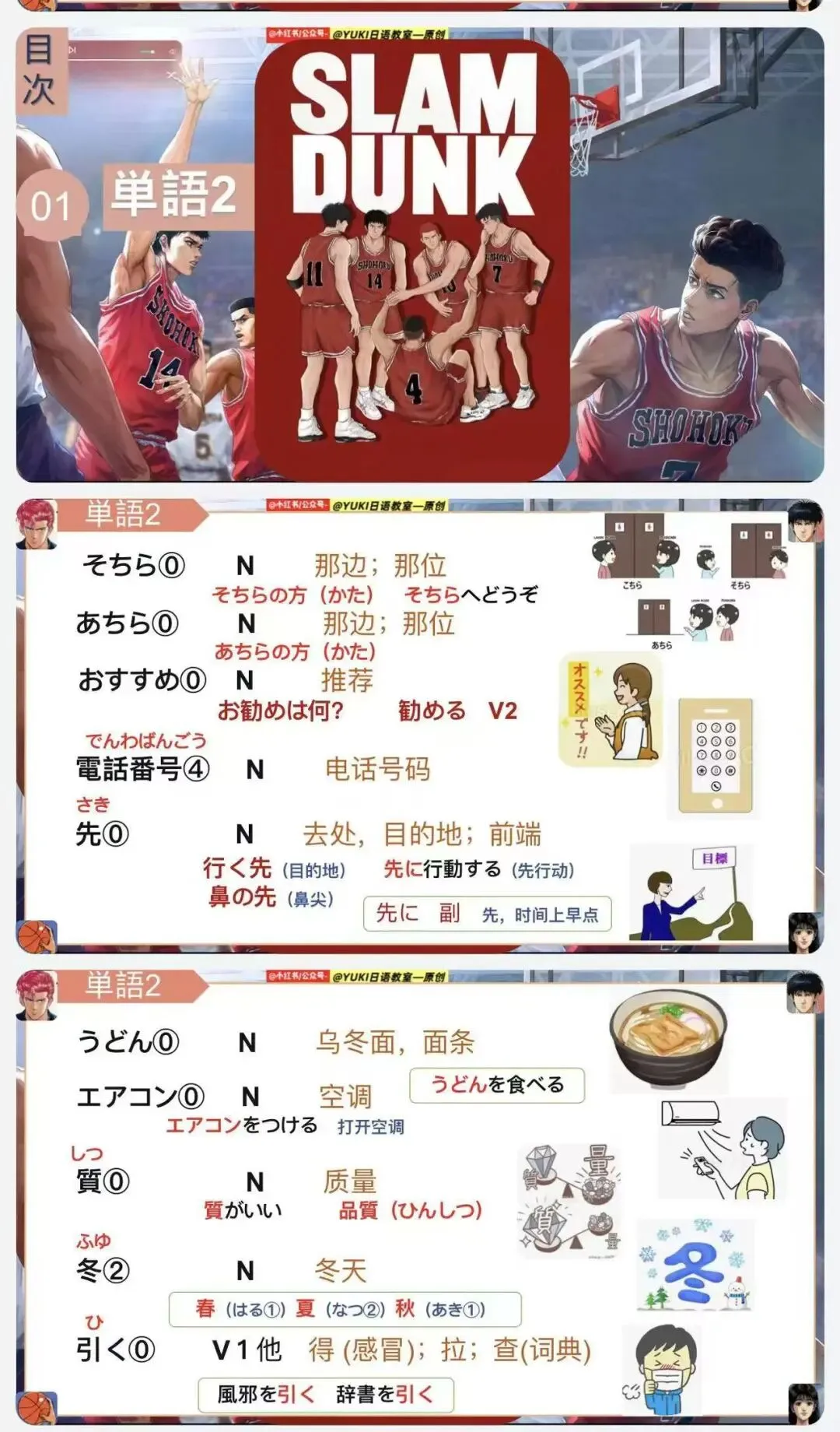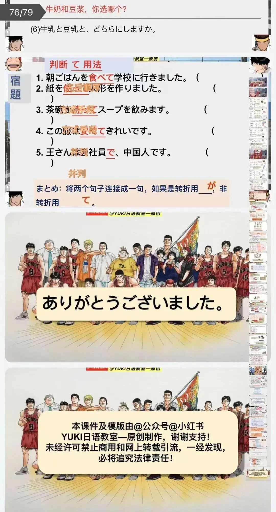 新版人教日语八年级动漫版课件第3课(灌篮高手-原创动漫版课件:)-本课件为原创课件由-@公众号--YUKI日语教室 制作。本课件未授权给任何人进行商用,禁止🚫二次引流和销售,盗版课件属于违法侵权行为,请大家谨防假冒,谢谢支持原创日语资料的制作!