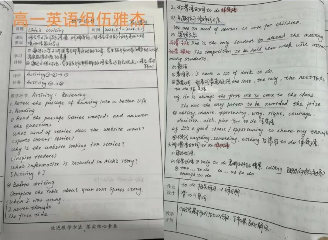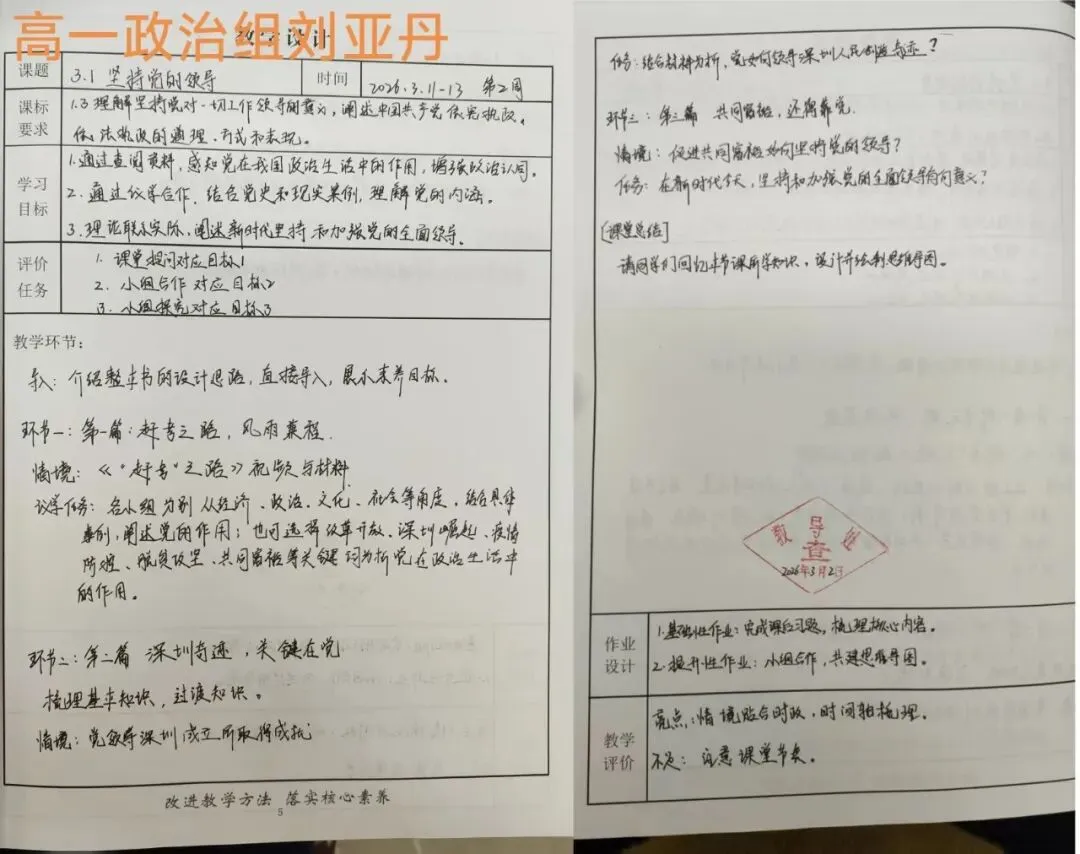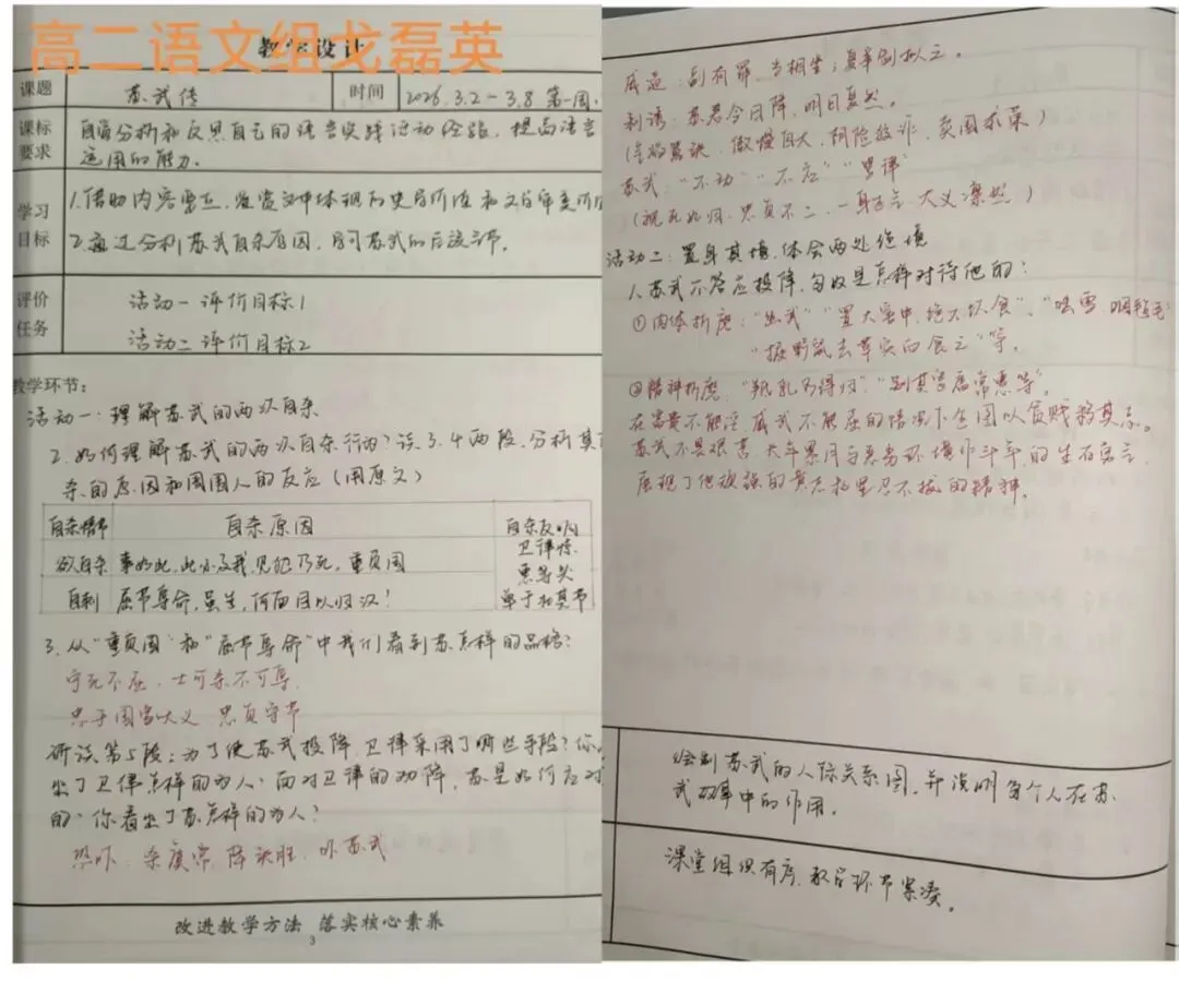 青年教师展现出昂扬的进取姿态,在教案中融入新颖理念与多元视角,体现了“虚心求教、快速成长”的良好势头。