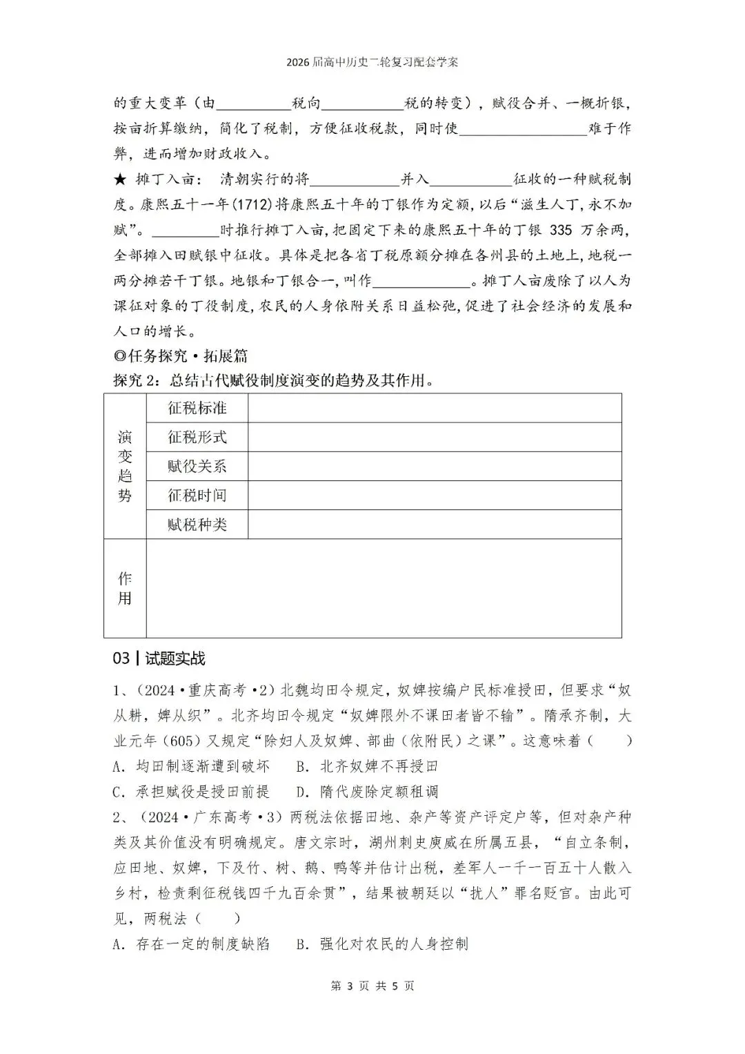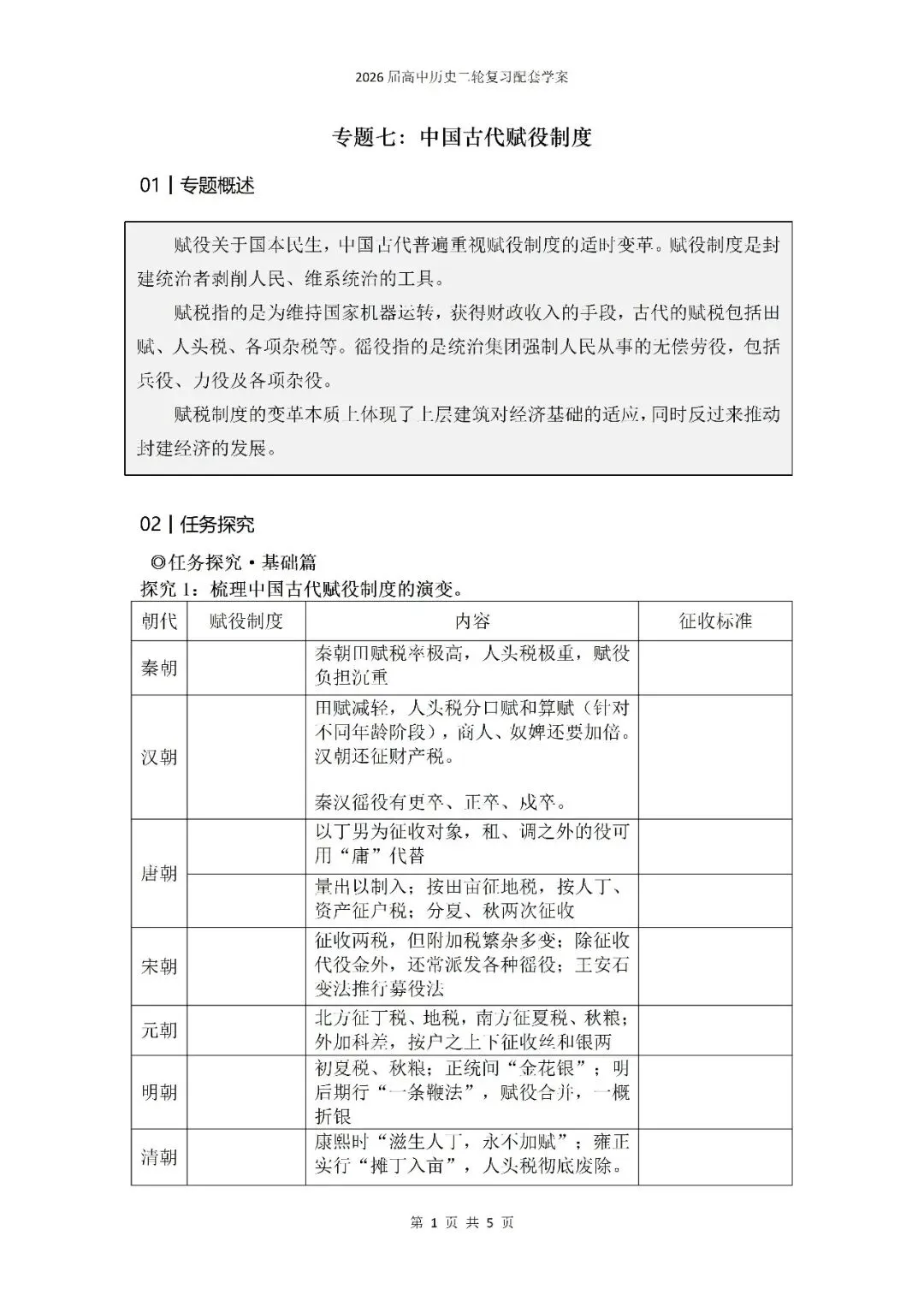 >二轮专题7:中国古代赋役制度【课件+学案】