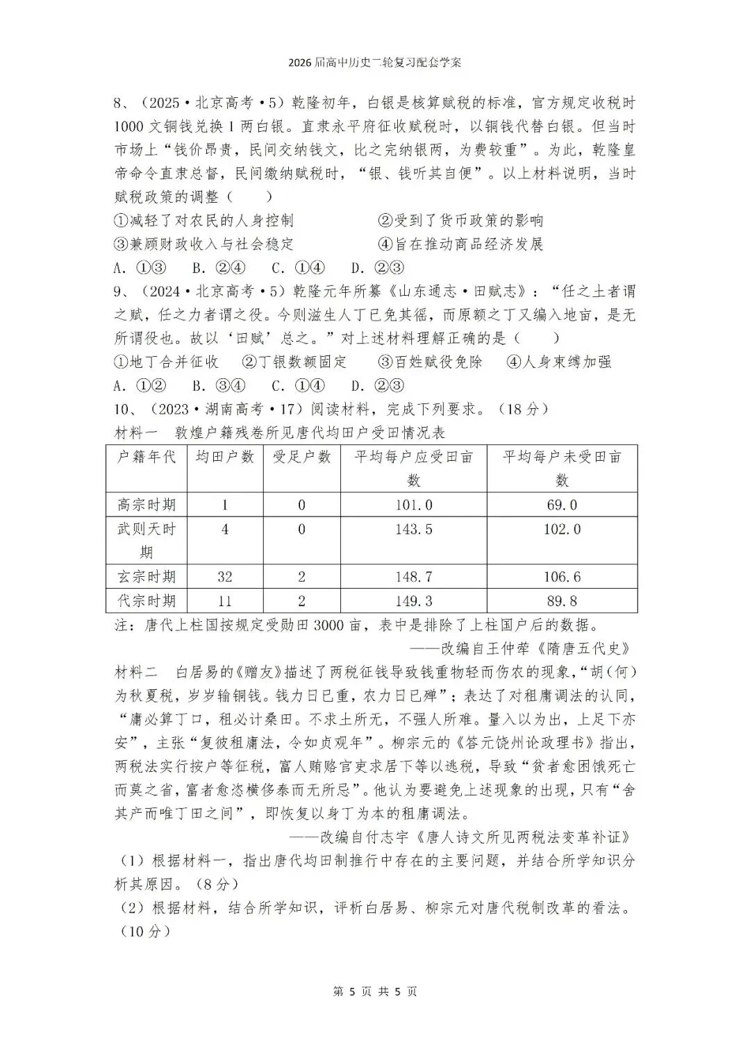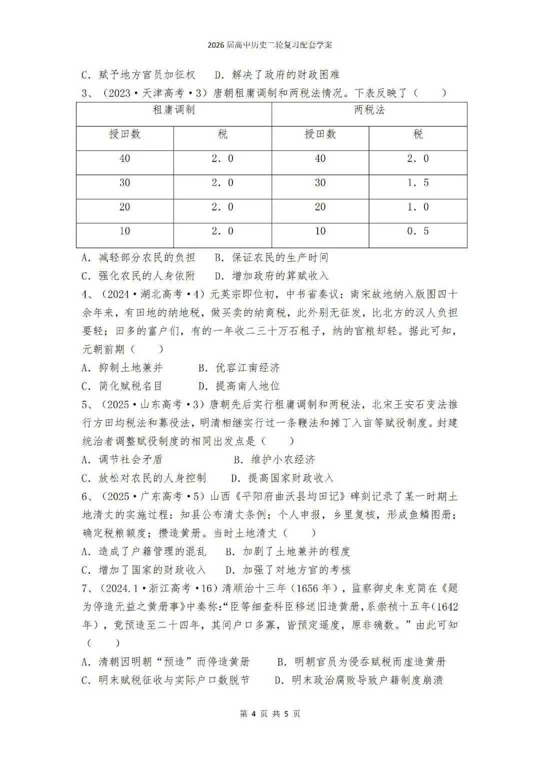 二轮专题7:中国古代赋役制度【课件+学案】