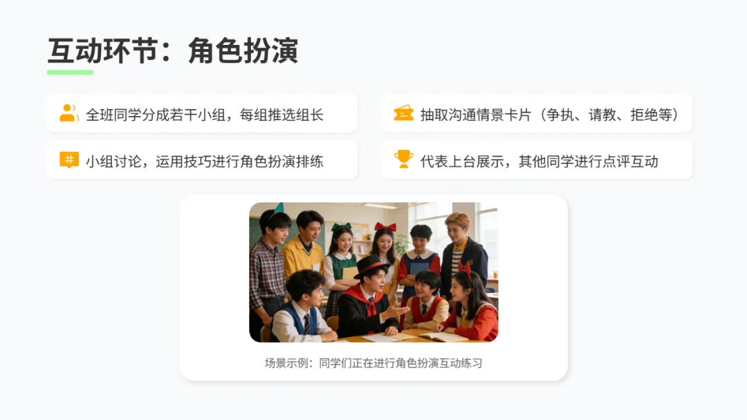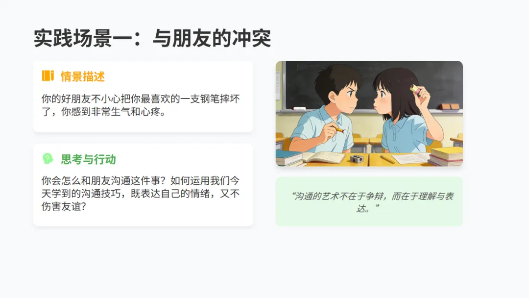 2、在情境中体验,理解、掌握人际沟通中正确的态度和方法技巧。