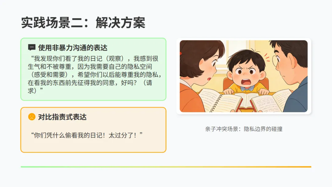 3、小结:文明的合乎情理的话之所以让人爱听,是因为它使听者受到了尊重,从而也对对方产生信任感。如果你听到别人对你说的话尽是不礼貌的、刺耳的,你心里也不会好受。