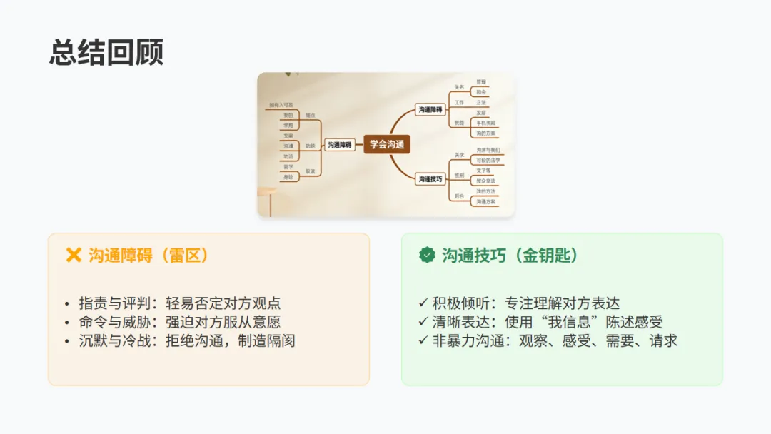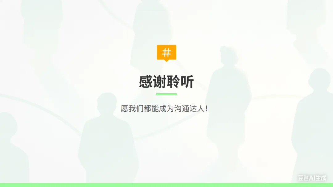师总结:我们今天的的主题就是沟通。与人沟通是最重要的就是把双方的意见、想法和观点相统一,再达成一致,这就是成功的沟通。