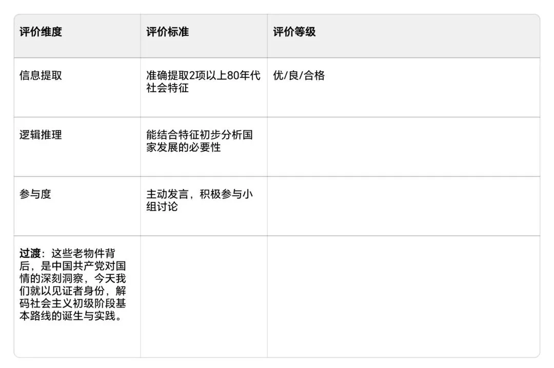 - 表现性评价:评价小组展示的逻辑性、对理论内涵的理解深度。
