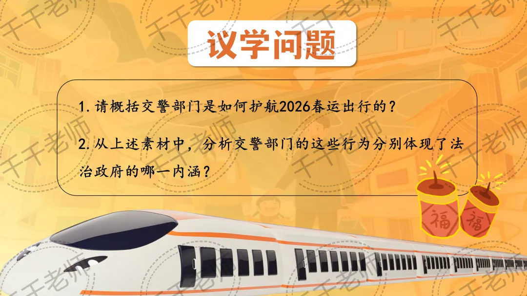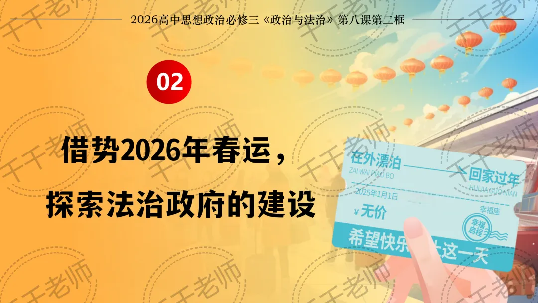 >优质课课件|2026高中政治必修三8.2法治政府课件PPT+逐字稿(总议题:2026年春运大考中,法治政府如何答好民生卷?)