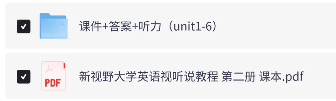 新视野大学英语视听说教程 第2册 参考答案+课件PPT+听力音频(第四版/思政智慧版)。课本答案和听力原文都在ppt里面!!!通过夸克网盘分享的文件:「视听说教程2答案及听力原文」链接:https://pan.quark.cn/s/58c351827a06