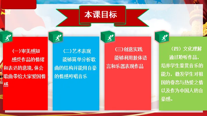 感受作品的情绪和表达的意境,体会歌曲带给大家爱国情感