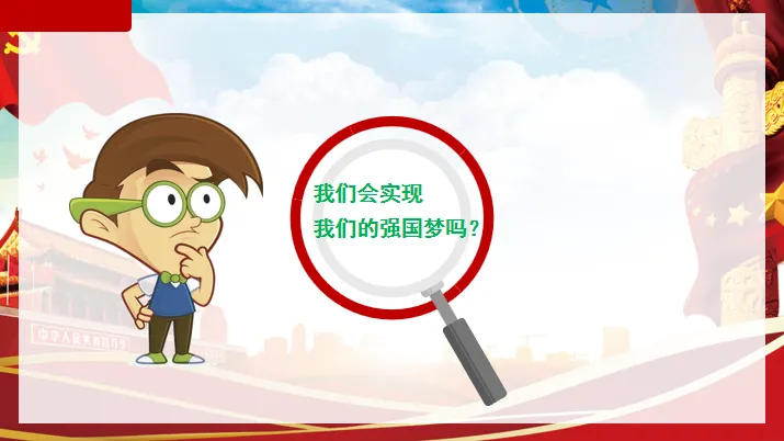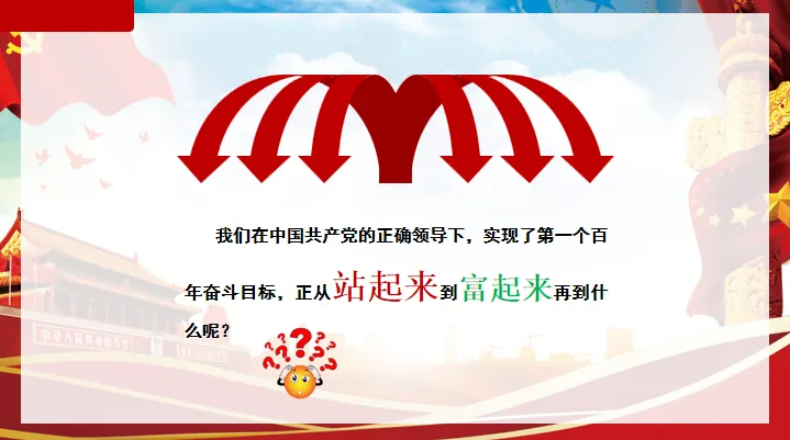 教师:我们在中国共产党的正确领导下,实现了第一个百年奋斗目标,正从站起来到富起来再到什么呢?