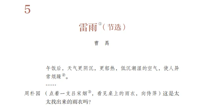 节选自第二幕,主要写周朴园与鲁家母子的对话,分两部分。
