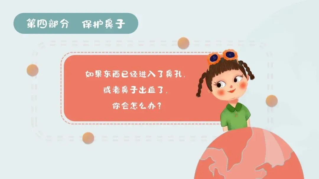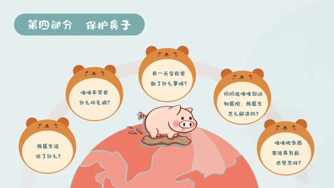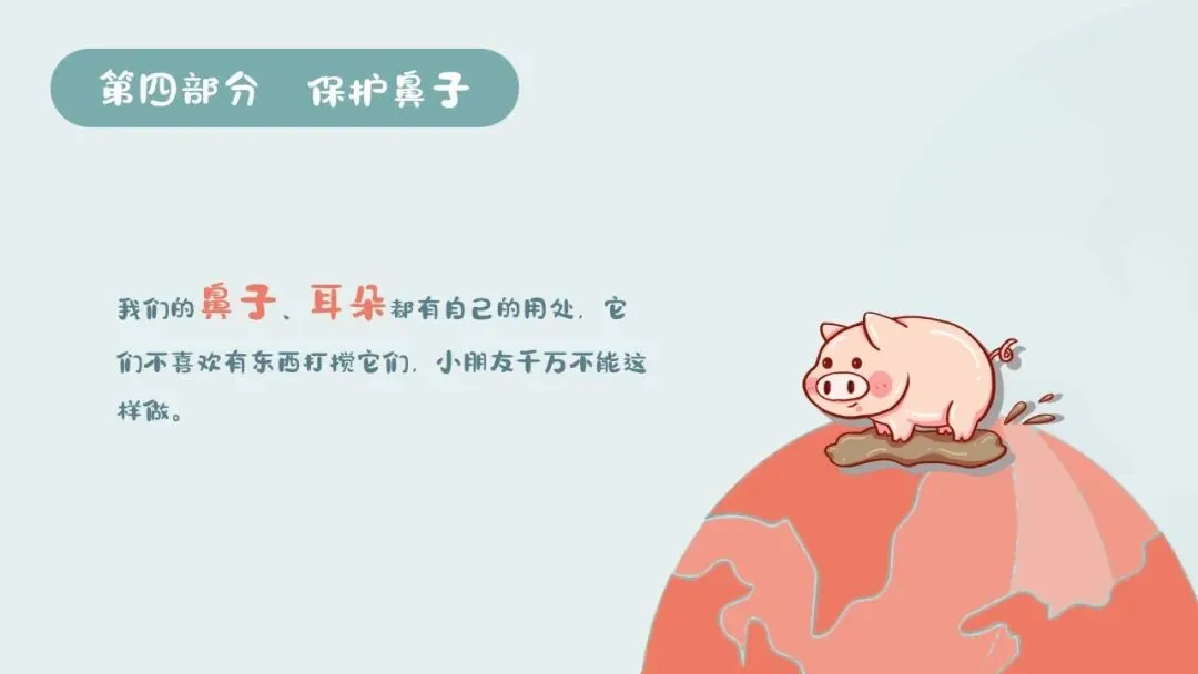 2.活动难点:在实际生活中能自觉践行保护鼻子的行为,遇到鼻子进异物、出血等情况时能采取正确的处理方式。