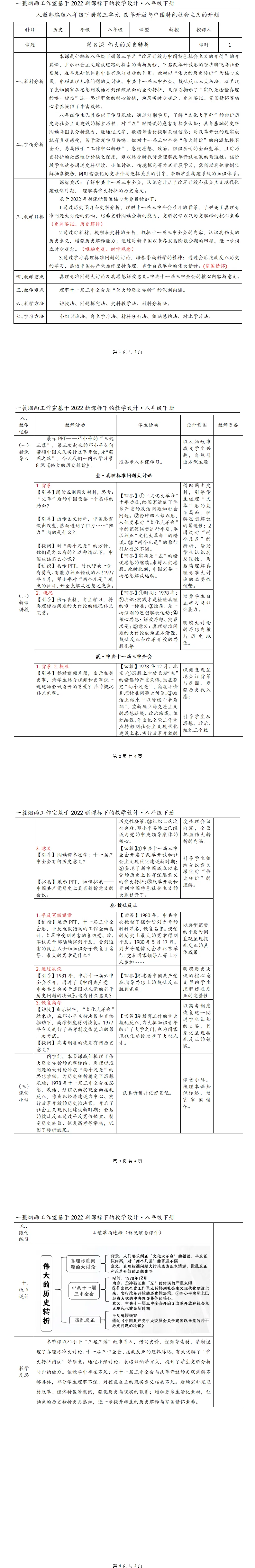 >第8课 伟大的历史转折(教案)