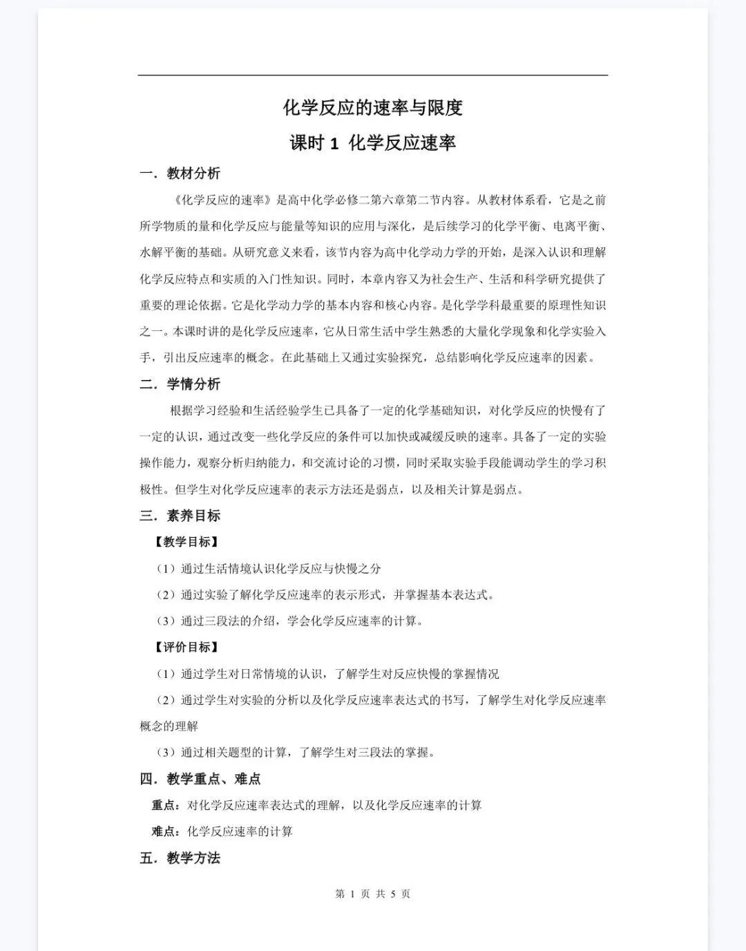 >【必修二11】高中化学《化学反应速率》课件+教学设计+学案设计