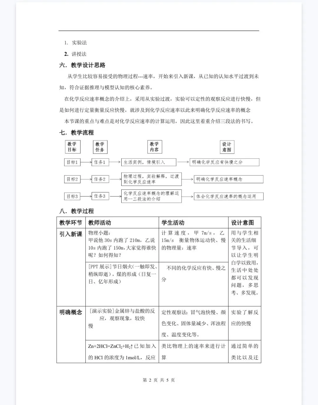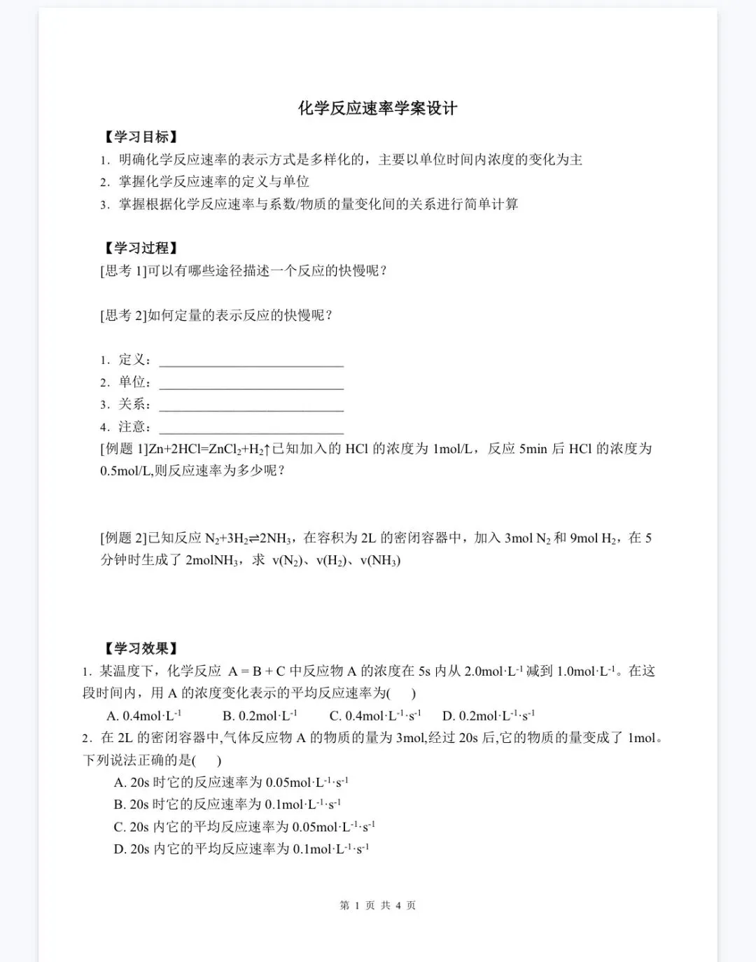 【必修二11】高中化学《化学反应速率》课件+教学设计+学案设计