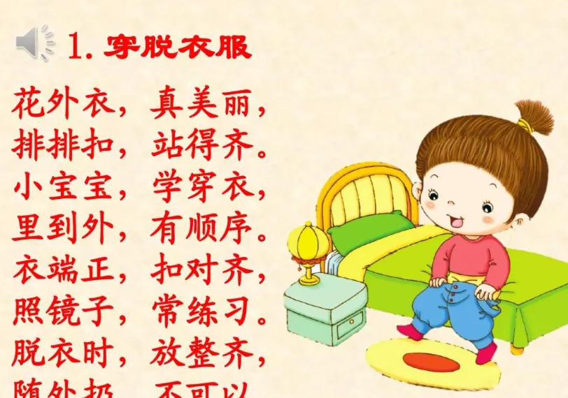 1、初步懂得身体的冷热与穿脱衣的关系,并知道及时穿脱衣服能预防感冒生病这一基本卫生常识。