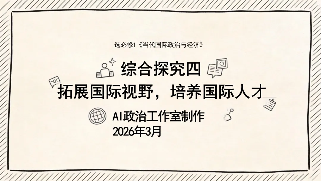 AI 政治工作室简介:本工作室由特级教师领衔,专注思想政治学科教学资源研发与教师专业成长服务,以AI 技术 + 一线经验 + 实用落地为核心特色,面向广大思政教师提供系统化、高品质、可直接使用的教学支持服务。工作室坚持专业、严谨、原创、高效的原则,聚焦课堂教学、备课教研、论文写作等核心需求,致力于成为政治教师教学路上的可靠伙伴。主要服务有1. 提供中学思想政治教学资源库一般会员全文阅读或VIP资源全部共享。2. 公开课和赛课等教学设计和配套课件教学阐述(说课)逐字稿的制作提示:本公众号原创课件为ai政治工作室所有,未经授权严禁私自转让买卖和公开发布,需要请与ysfw2020直接联系,扫描二维码加入资源库会员,可浏览下载更多资源。