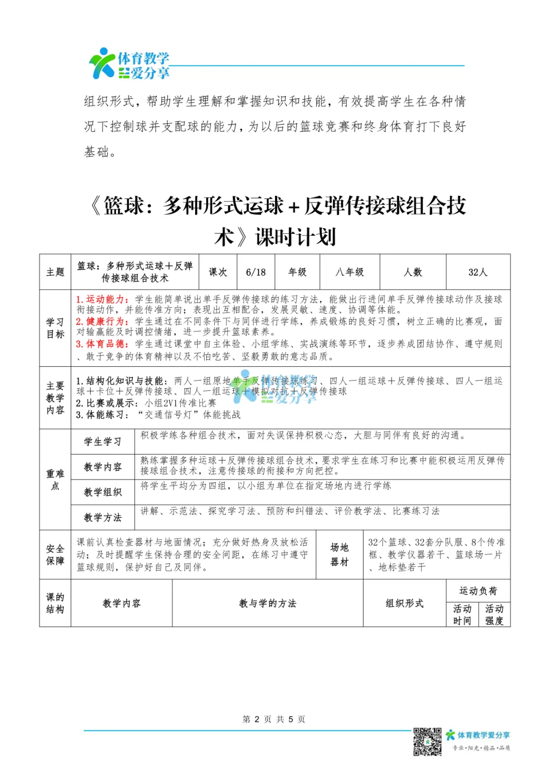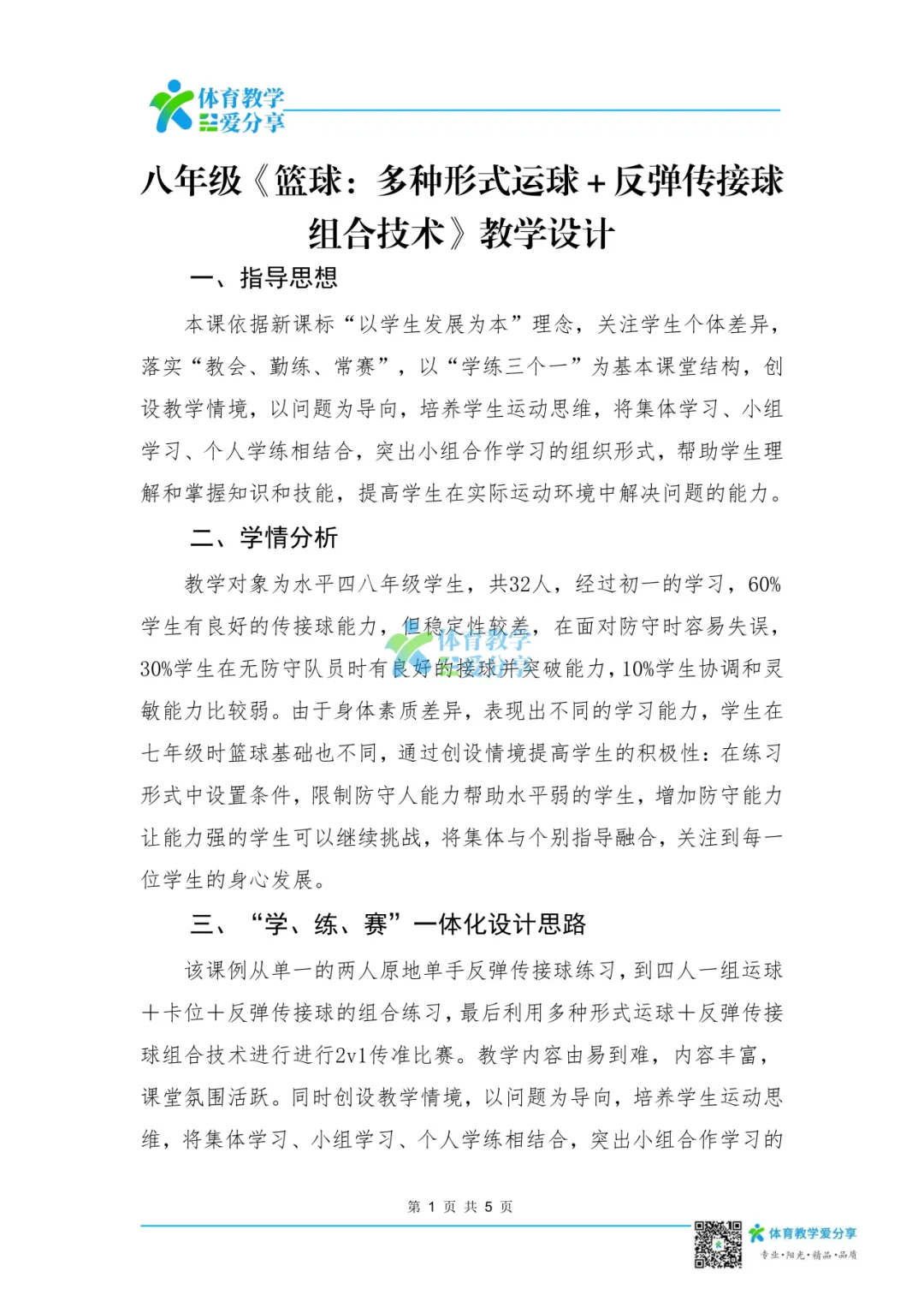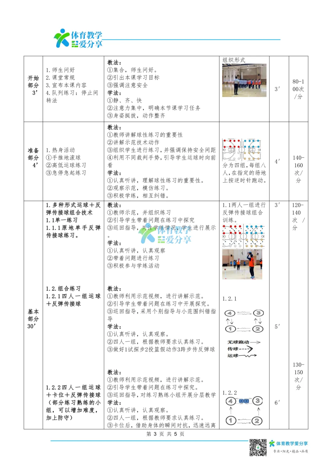 【优秀教案】《篮球:多种形式运球+反弹传接球组合技术》教学设计