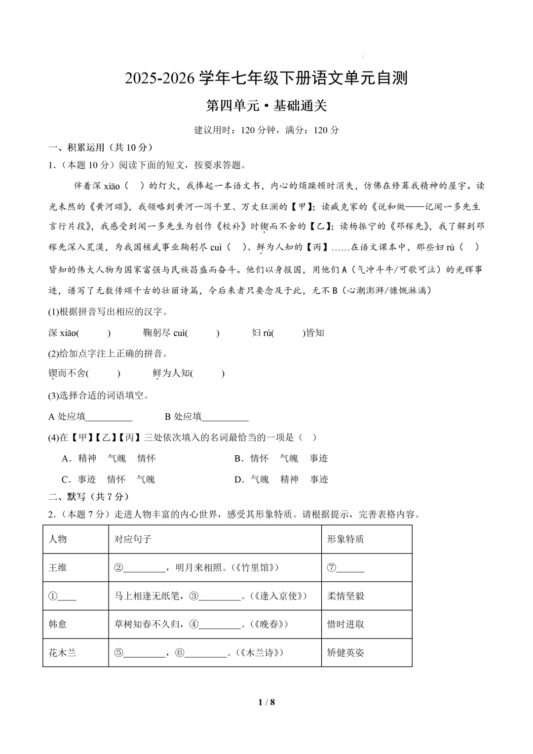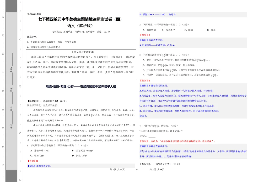 七下语文是夯实语文基础、培养阅读思辨能力的黄金阶段。这套资料由一线语文教师精心整理,紧扣教材核心,贴合中考命题趋势,不管是学生自主刷题提分,家长辅助孩子复习,还是老师备课教研,都是省心之选。