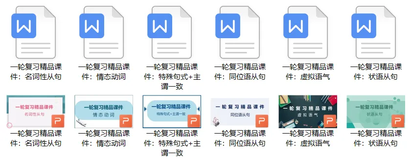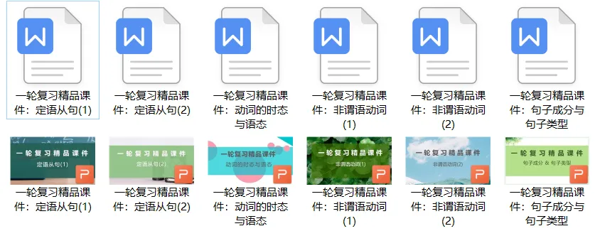 更新后的一轮复习的语法10个专题。(点击可看课件预览)