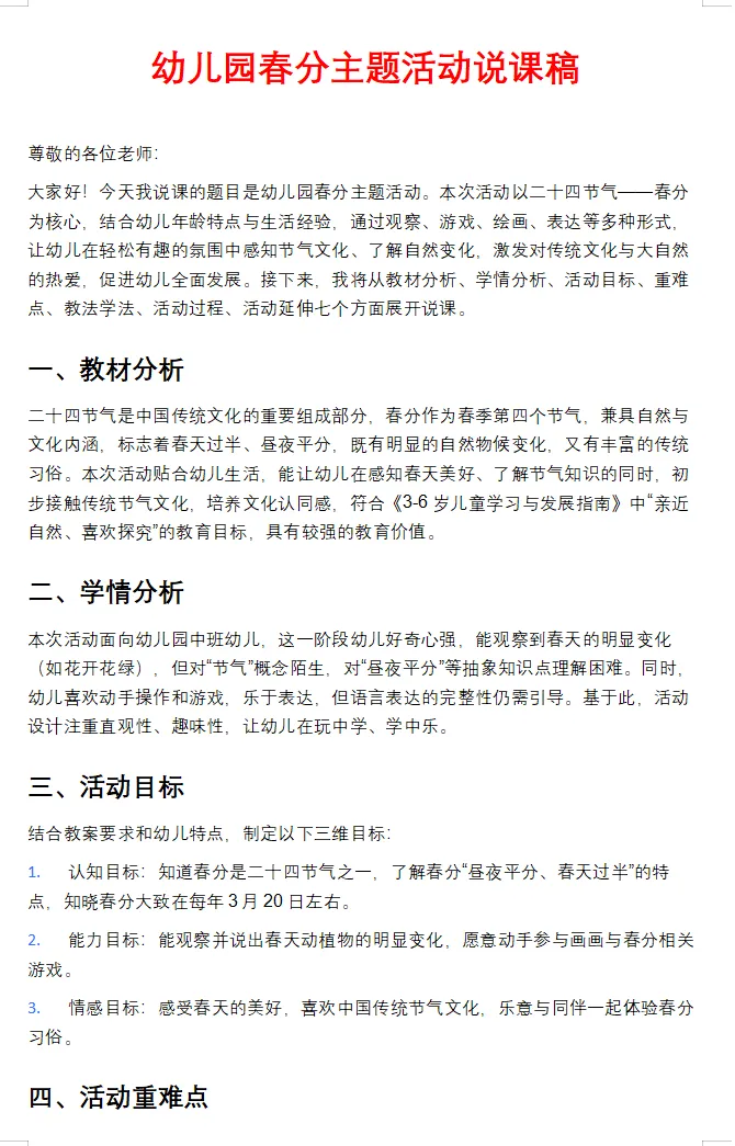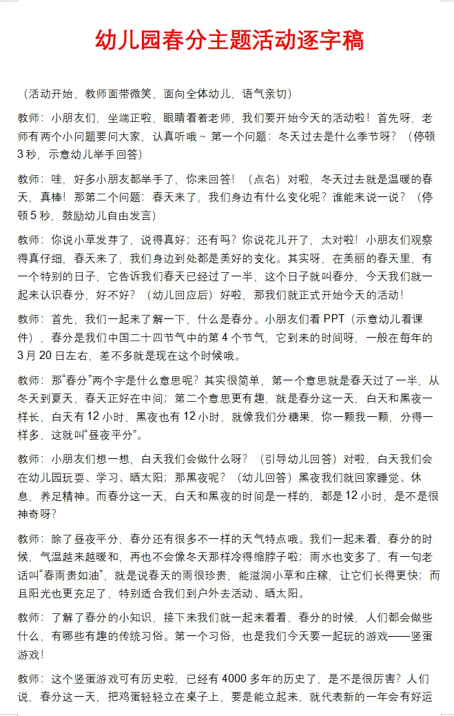 为帮助老师轻松备好一节有深度、有亮点的春分节气课,豆子素材精心整理了一份《二十四节气·春分》教学资料包,涵盖课件、教案、说课稿、教学反思及逐字稿,内容完整,拿来即用。