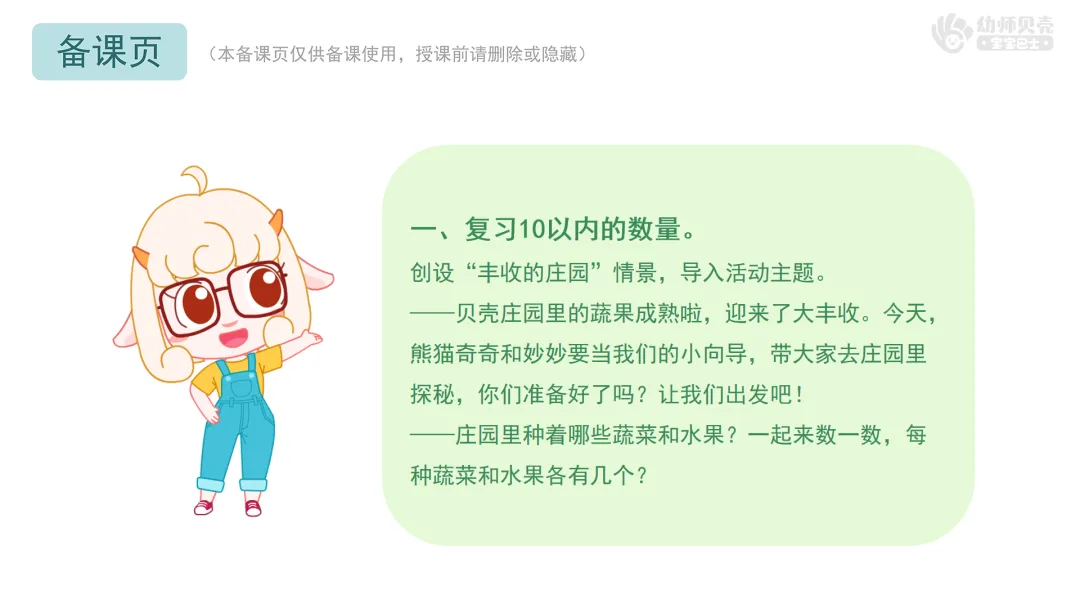 ——请先仔细数一数自己任务卡上有几个蔬果,数清楚后记在心里。