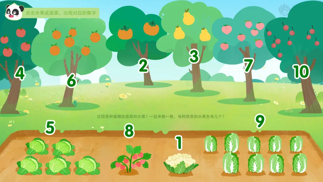 ——庄园里种着哪些蔬菜和水果?一起来数一数,每种蔬菜和水果各有几个?