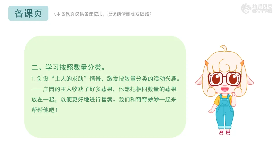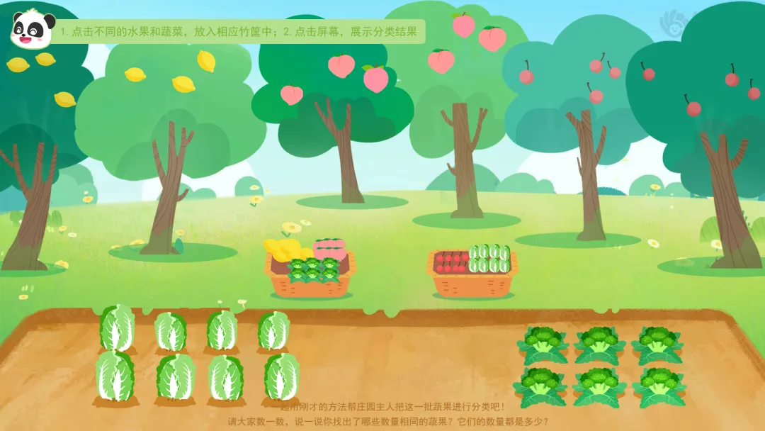 ——一起用刚才的方法帮庄园主人把这一批蔬果进行分类吧!