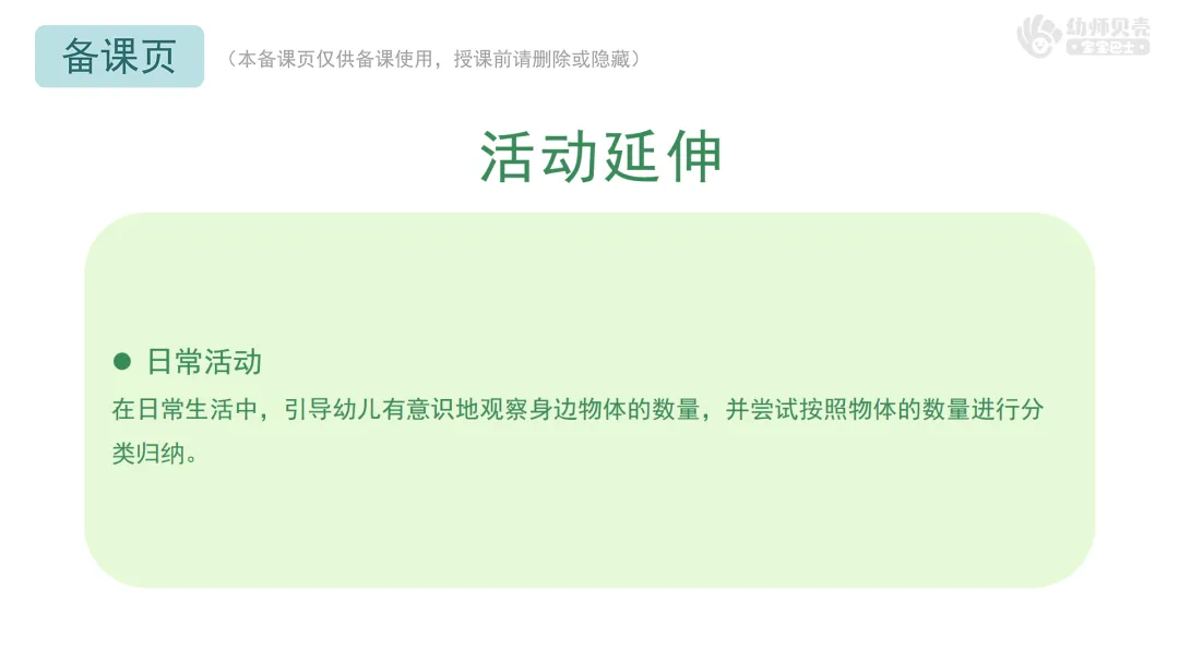 在日常生活中,引导幼儿有意识地观察身边物体的数量,并尝试按照物体的数量进行分类归纳。