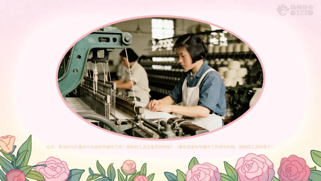 ——过去,劳动妇女们是在什么样的环境中工作?得到的工资又是怎样的呢?(要在很差的环境中工作很长时间,得到的工资却很少)