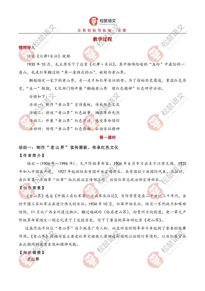 >��【公开课】七下《老山界》| 教学课件+教学设计