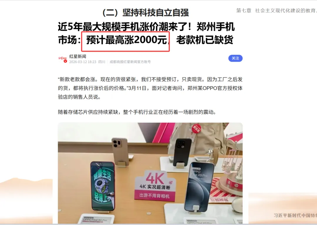 案例最新用到3月12号的手机涨价