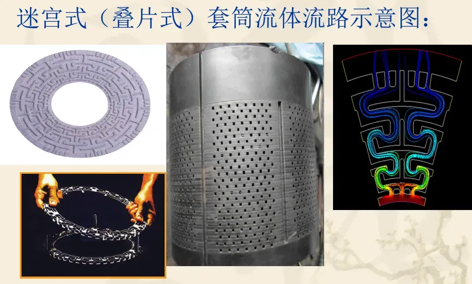 这类结构的阀套筒一般采用Ⅱ级至Ⅳ级结构,也就是将两个或三个打孔形状不同的套筒通过定位销或其它方式装配在一起,来不断改变流体的流向和流速,从而达到逐步降低压能的目的。其压降效果相当于二个或三 个套筒阀串联使用。此类多级降压调节阀由于其结构复杂,流道的不断改变,很容易造成阀芯的卡死和流道堵死等现象,所以对流体的清洁程度以及是否含有颗粒杂质有很高的要求。