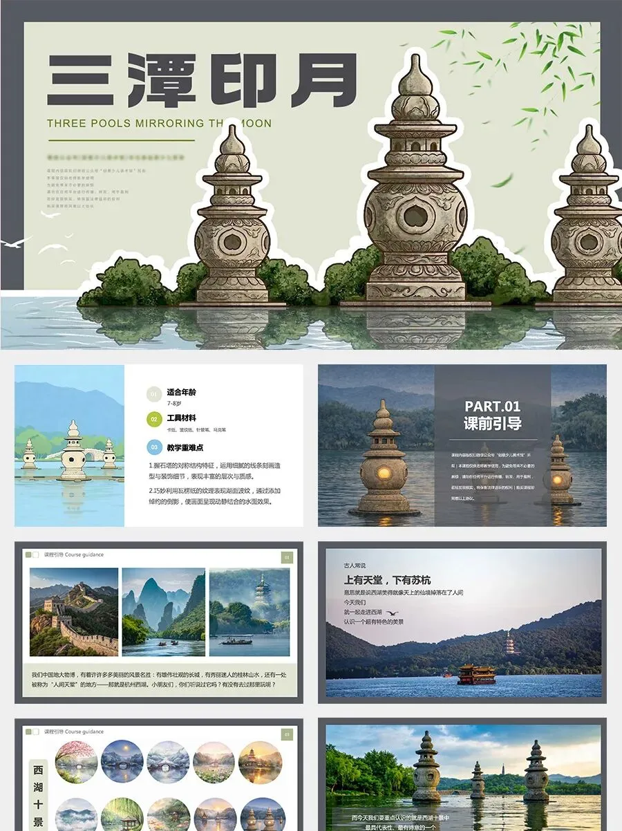 古人常说“上有天堂,下有苏杭”。说到江南美景,就不能不提杭州西湖,而西湖最有名的就是“西湖十景”,每一处都像一幅漂亮的画。今天我们就重点认识其中最有诗意的一处——三潭印月,它不仅是西湖的标志,还是1元人民币背面的美景,是不是特别厉害?