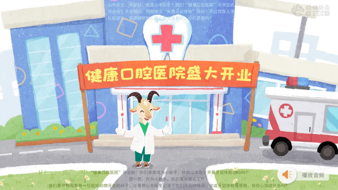 ——“健康口腔医院”开业啦!你们愿意成为小助手,协助山羊医生开展牙齿体检活动吗?