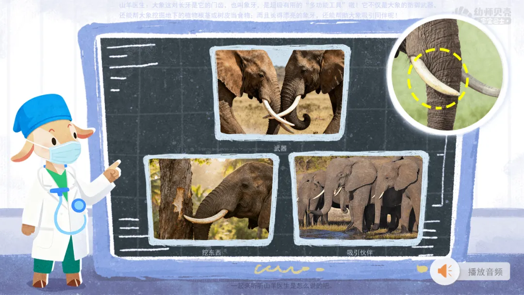 ——这又长又弯又结实的大象牙,你觉得能帮大象做什么事情?一起来听听山羊医生是怎么说的吧。